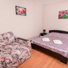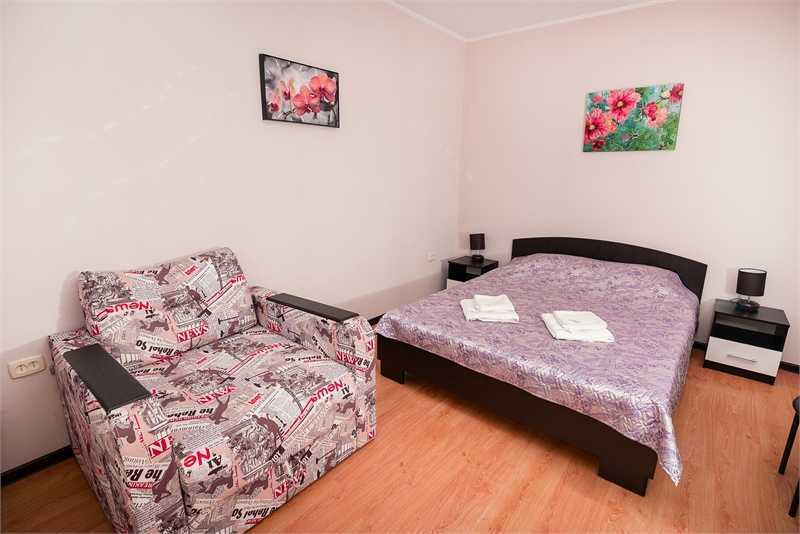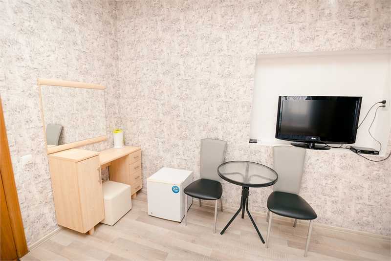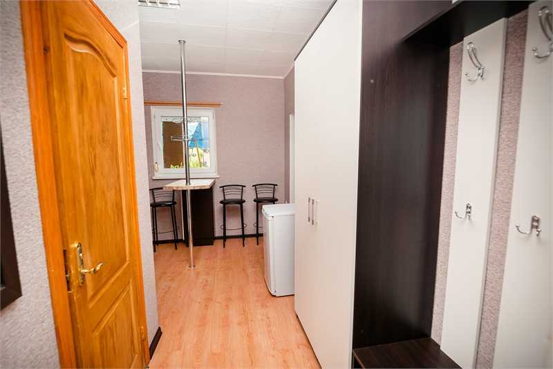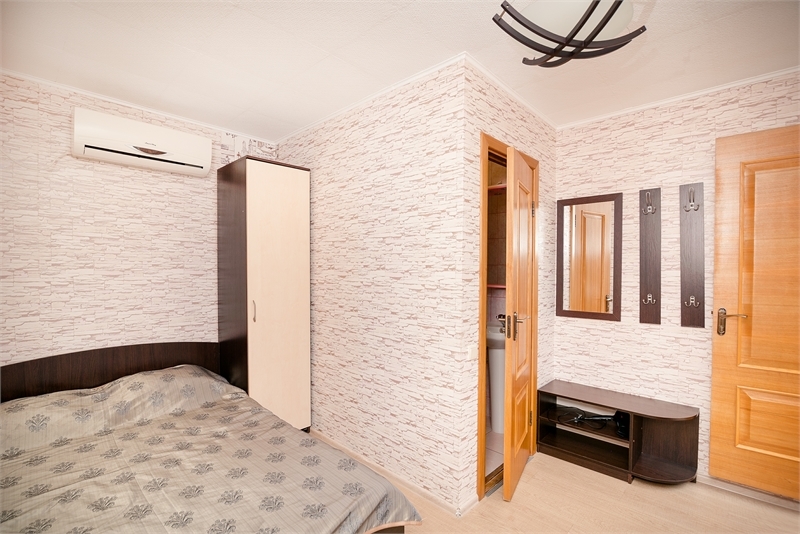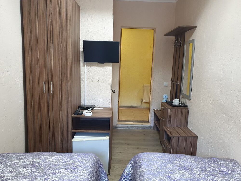 Компактный и уютный однокомнатный номер на двоих человек с двумя спальными местами, 2-й этаж. В номере сделан современный ремонт, площадь номера: 10 кв.м. Душ общий – на этаже. Холодильник (общего пользования), современный вентилятор, душ и туалет общий на этаже.
