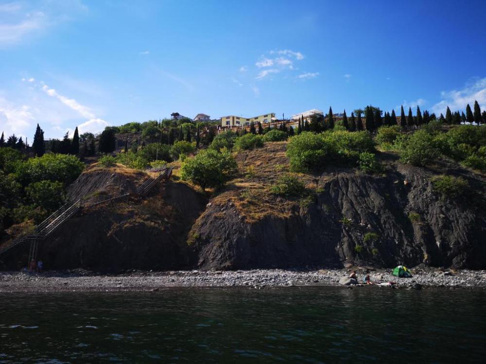 Пляж: 1. Сразу через дорогу от гостевого дома вниз по лестнице, дикий пляж с крупной галькой. Этот пляж подходит не только для купания, но и для дайвинга или рыбалки. 2. Правее от гостевого дома в 10-15-минутах ходьбы вдоль дороги - пляж п. Солнечногорское, мелкогалечный с хорошим спуском и заходом в море. 3. Слева от гостевого дома через Сырную скалу вниз по склону в 15 минутах - пляж п. Малореченское с новой освещаемой набережной, мелкая и крупная галька.