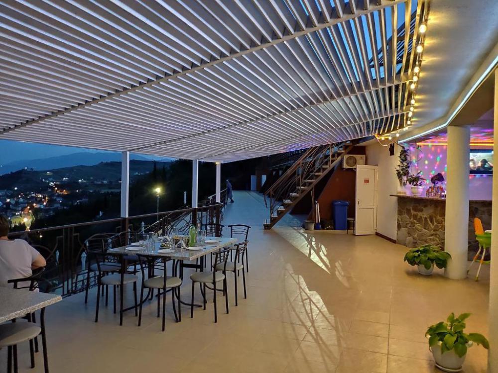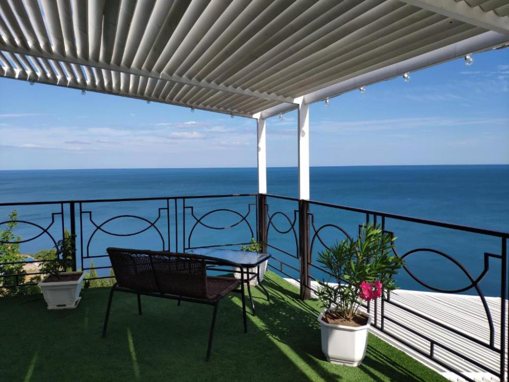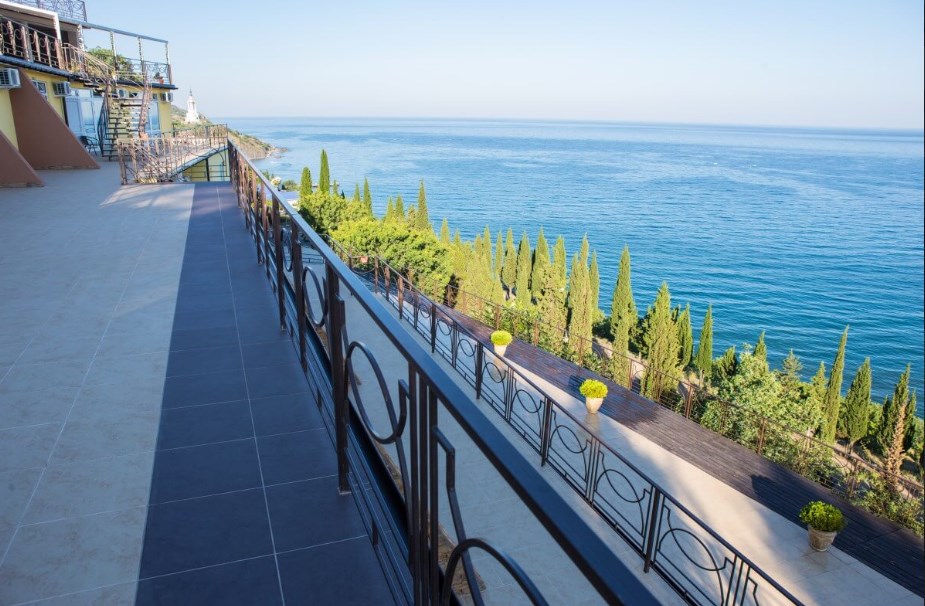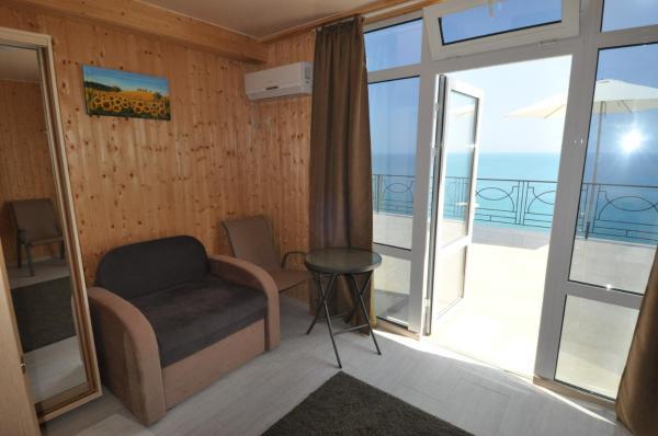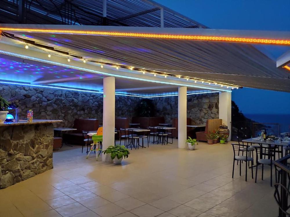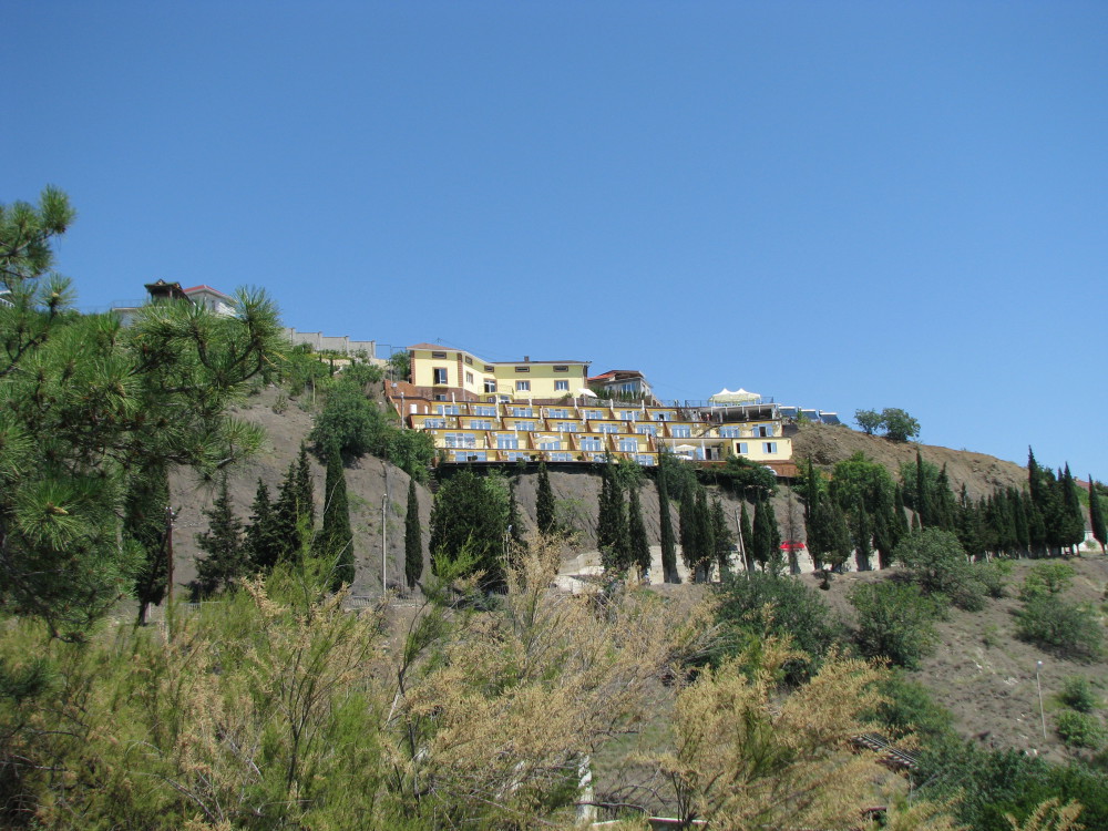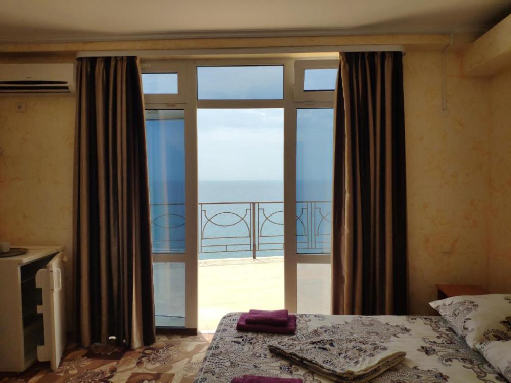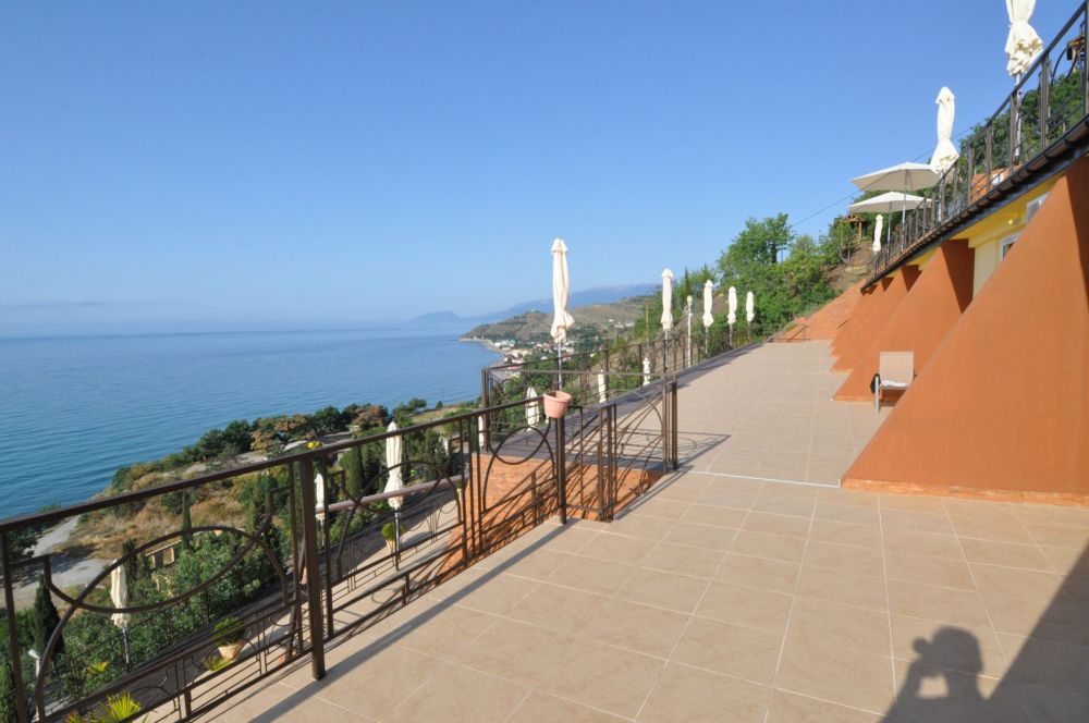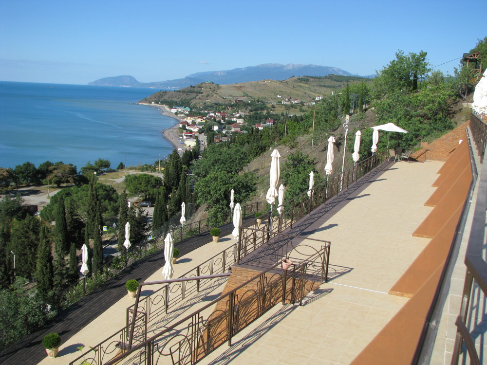 Здравствуйте. Несомненно плюсы отеля это шикарный вид на море и бассейн. Расположение отеля не удобное. До пляжа идти минут 15.Особенно тяжко идти обратно в отель.Поднимаешься по жаре сначала в гору минут 10(вдоль летящих машин,тротуаров нет ),потом ещё по ступенькам к номеру.Это тяжко и так приходилось ходить по нескольку раз в день.Через дорогу есть пляж дикий.Ну к нему тоже очень тяжело идти(много ступенек)В море войти проблематично,особенно ребёнку. там же рядом есть нудиский пляж(купались голые мужчины),поэтому мы на этот пляж больше не ходили)Очень неудобно, что завтраки,ужины надо заказывать заранее,поэтому в отеле мы не питались. Приезжаем поздно с экскурсией заказать уже не у кого на утро завтрак, так же и с ужином.Из плюсов есть мангальная ,с прекрасным видом.Пожарили шашлыка, на утро подошла попросила разогреть.Мне отказали,сказали что-то типо с микроволновкой. Пришлось доедать холодный шашлык.И вообще женщины которые работают в кафе в отеле не особо дружелюбные мне показались.Даже не здаровались никогда.Так же при заезде администратор назвала сумму оставшейся оплаты на 5000 тысяч больше.На что я предоставила распечатку брони, ну потом вопрос решили.Ну всё равно не очень приятно. Отель не плохой,если из него никуда не выходить.Если же вы ходите на море по нескольку раз,вечером погулять ,то эти ступеньки и горки станут для вас испытанием))