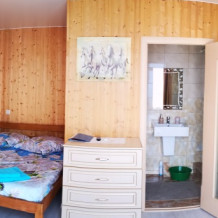 • Кафе на территории гостевого дома - по желанию. Домашняя кухня с трёхразовым комплексным питанием, ориентировочно 850 рублей/сутки на человека. Вечером работает как кафе-бар