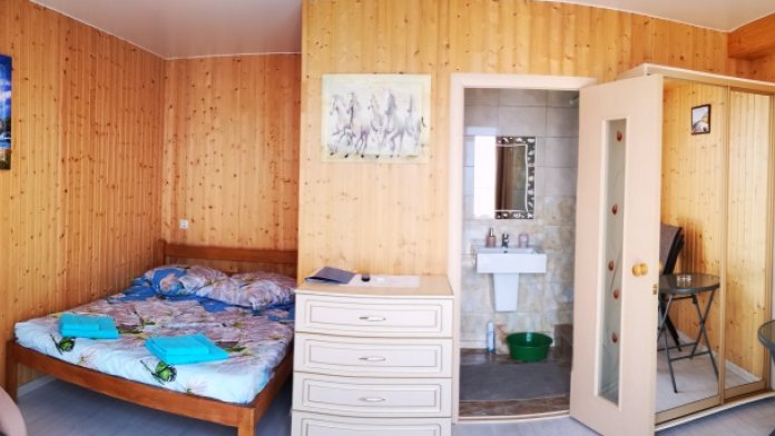 Питание: в кафе на территории гостевого дома - по желанию. Домашняя кухня с трёхразовым комплексным питанием, ориентировочно 850 рублей/сутки на человека. Вечером работает как кафе-бар.