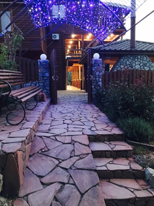 Гостевой дом находится в 250 метрах от моря, а также вблизи важных объектов инфраструктуры поселка, таких, как рынок, отделение банка, аптека, магазин, кафе. На территории имеется летняя терраса, оборудованная всем необходимым для отдыха, беседка с мангалом и каменной печью, где можно устраивать дружеские посиделки с шашлыками, парковка для автомобилей. В гостевом доме есть доступ к интернету через беспроводную сеть Wi-Fi.