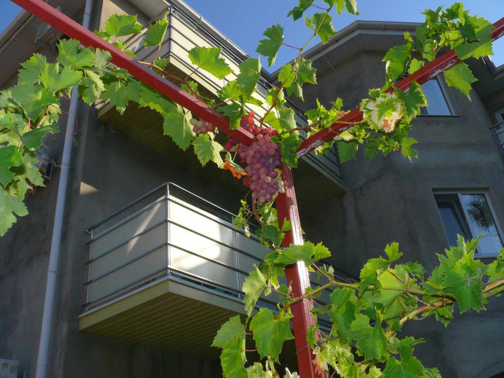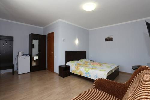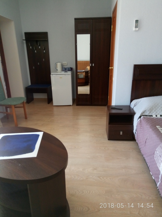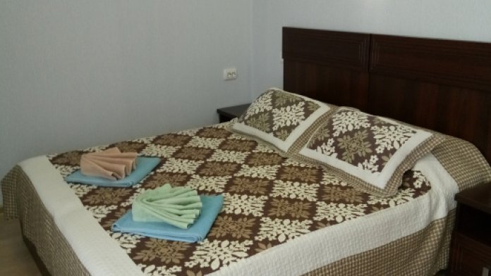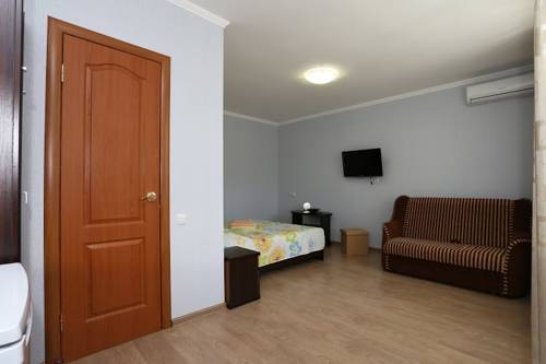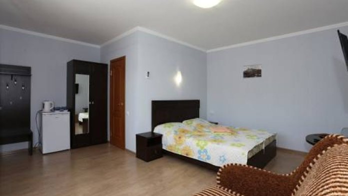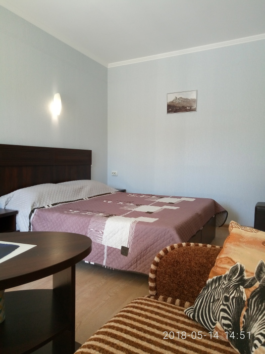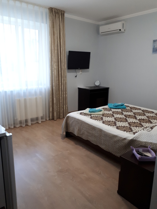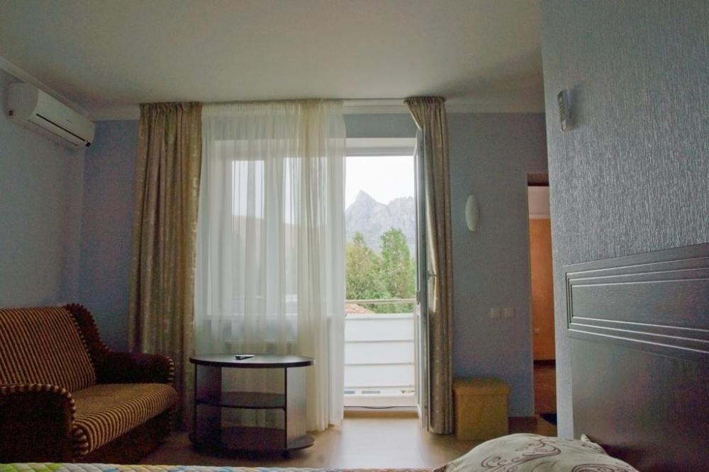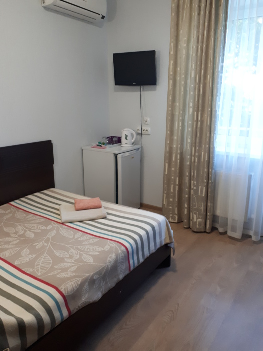 В номере 1 двуспальная кровать или 2 односпальные кровати, 1 диван-кровать. В номере есть балкон с садовой мебелью. На окнах москитные сетки.
