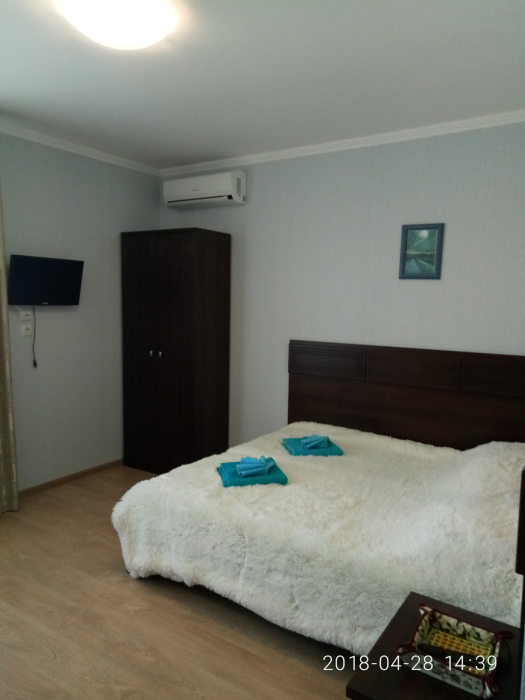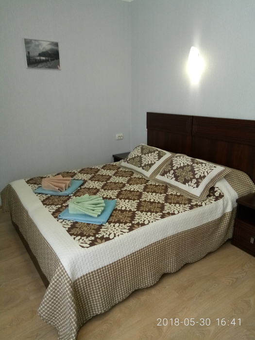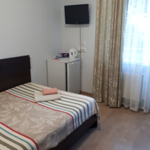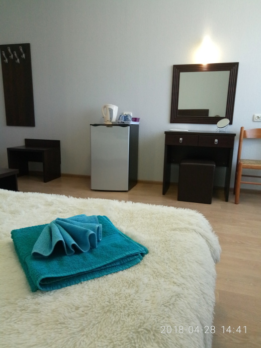 В номере 2х спальная кровать с ортопедическим матрасом. Максимальная вместимость номера 2 человека. В номере есть балкон.
