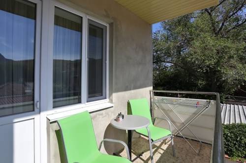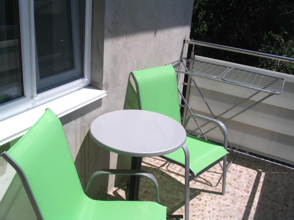 В номере 1 двуспальная кровать или 2 односпальные кровати. В номере есть балкон с садовой мебелью. На окнах москитные сетки.