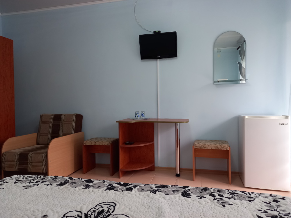 Мини-отель предлагает недорогой отдых в Береговом: уютные 2, 3-местные номера (в каждом номере - холодильник, телевизор, интернет Wi-Fi), оборудованная кухня для самостоятельного приготовления пищи, уютная тенистая беседка со столиками, где можно пожарить шашлык с друзьями (предоставляется мангал) или просто посидеть за стаканчиком любимого напитка.