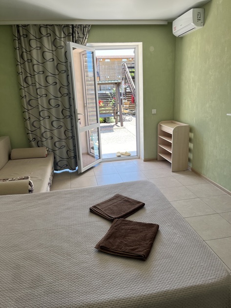 Очень добродушные хозяева, по любому вопросу можно обратиться, обязательно помогут! Во дворе замечательная площадка для детей. В номерах есть всё необходимое, -чисто. Летняя кухня, имеется вся необходимая посуда. Мангальная зона! Парковка для авто на территории. До моря рукой подать -буквально 5минут. Если соберёмся ещё раз-обязательно остановимся в "Хорошем госте" оценка 5+!!!!