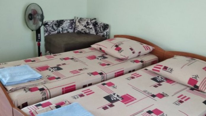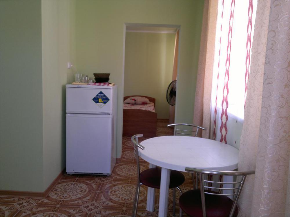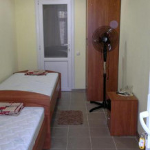 Номер светлый (два окна), уютный. Имеет личное место для посиделок и отдыха на свежем воздухе на общей террасе. Укомплектован всей необходимой посудой и шкафчиком для продуктов. Санузел в номере состоит из раковины, унитаза, душа.