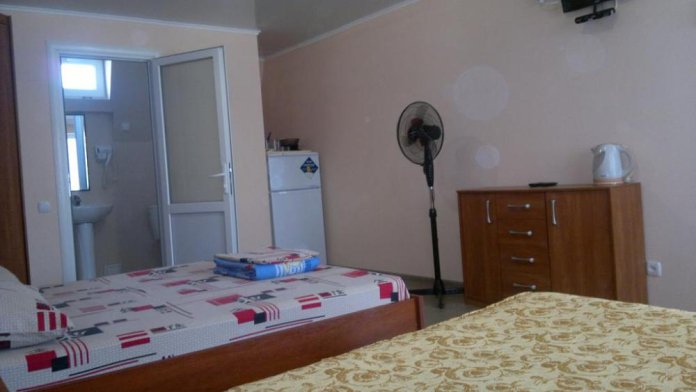 Номер теневой, прохладный, имеет обособленную личную террасу для посиделок и отдыха на свежем воздухе. Укомплектован всей необходимой посудой. Санузел в номере состоит из раковины и унитаза, душ общий в 3-4 метрах.