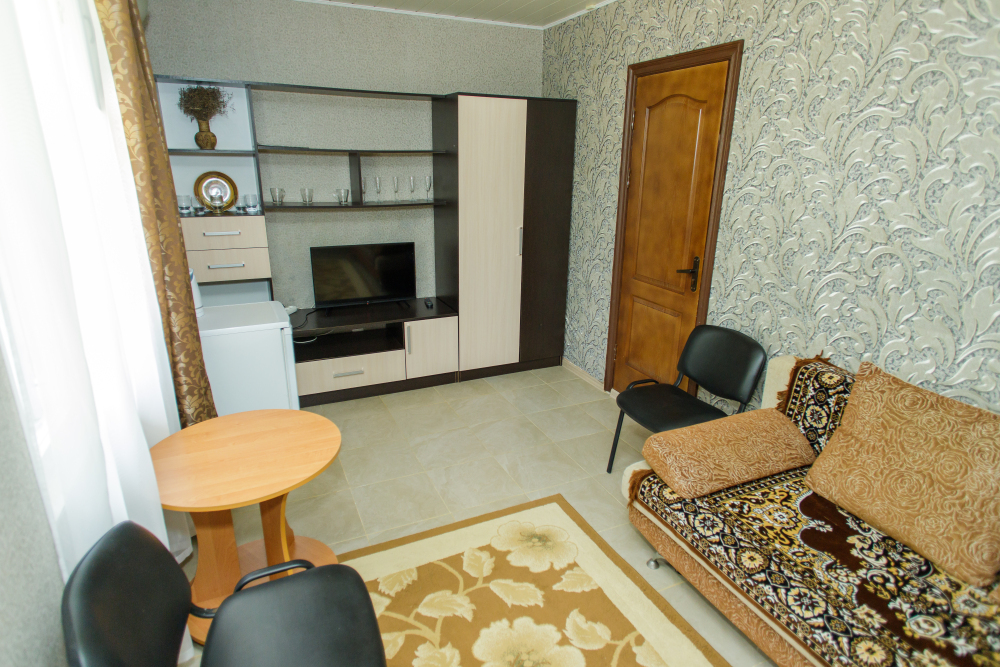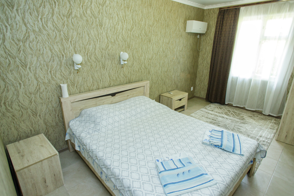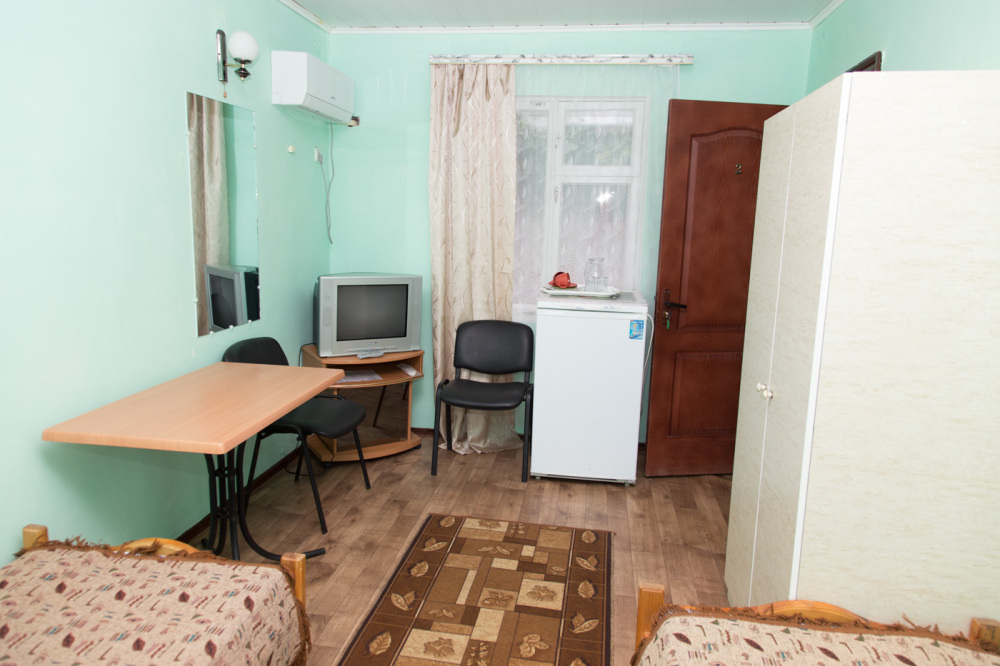 Уютная обстановка в номерах, все удобства, кондиционеры и горячая вода.