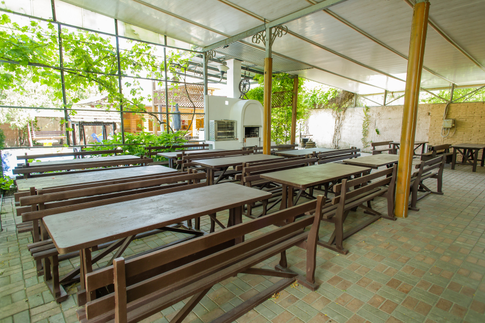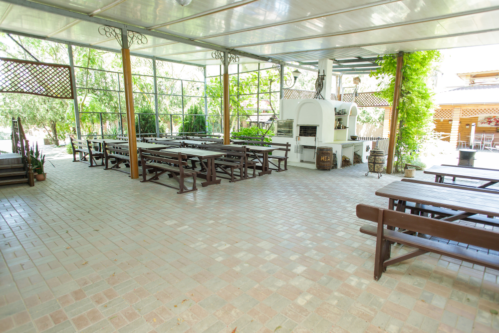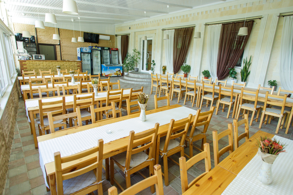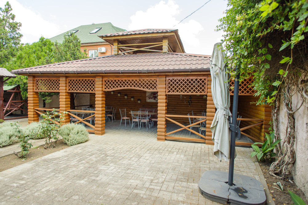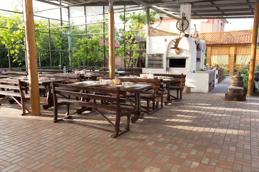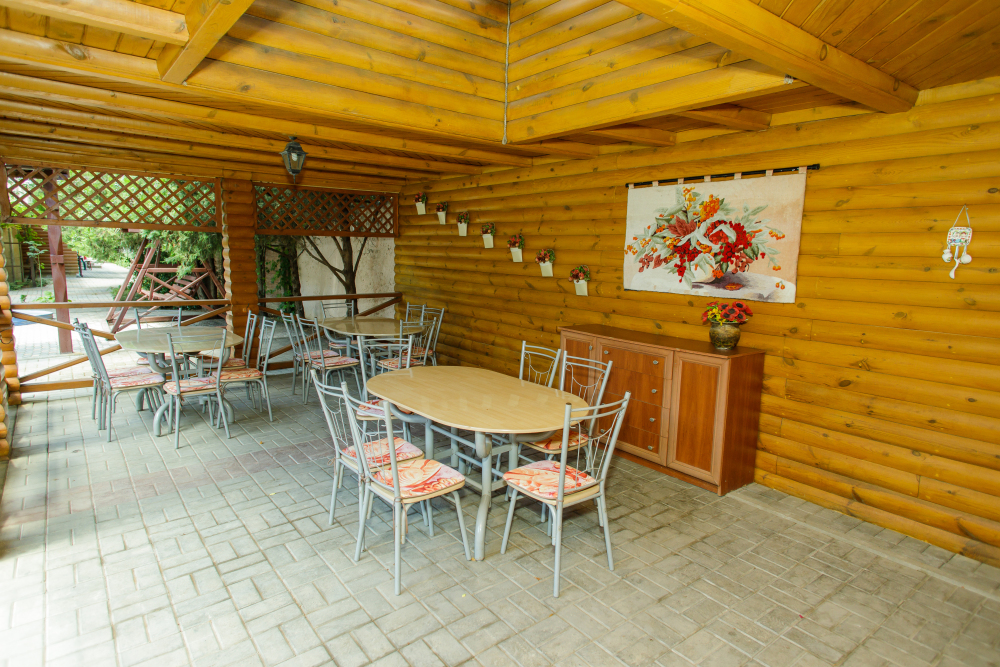 Удобная территория с кафе и Wi-Fi для летних посиделок с друзьями и семьей. Свободное время можно провести играя в бильярд, настольный теннис. Живописная русская баня с купелью. Есть площадка для барбекю с мангалом.