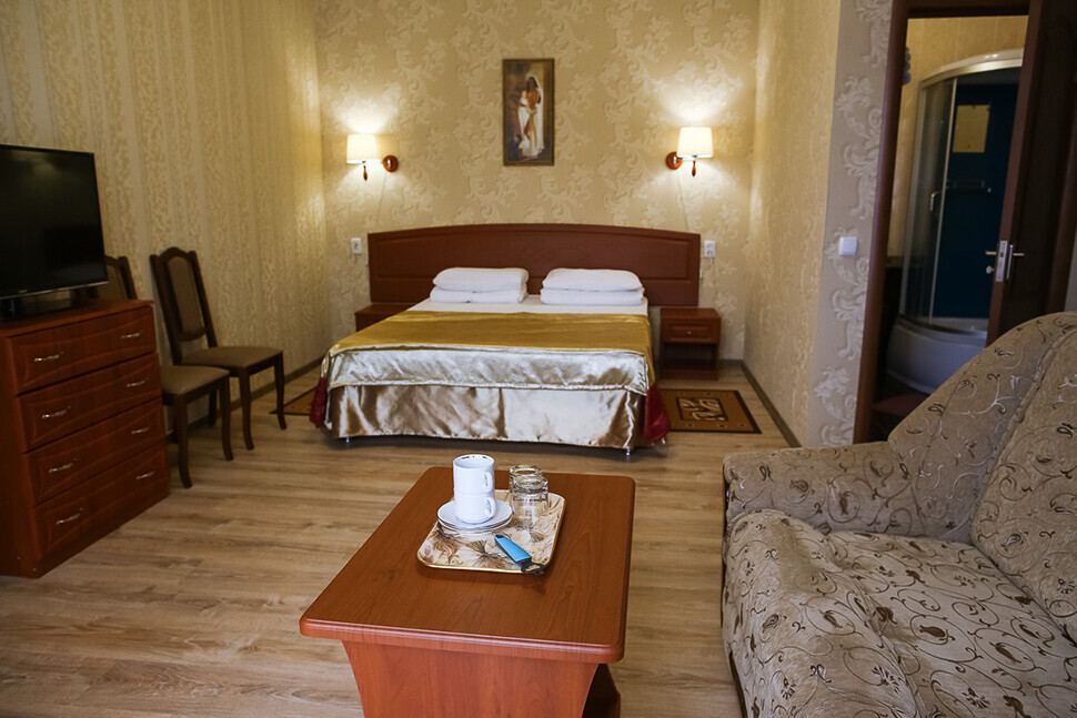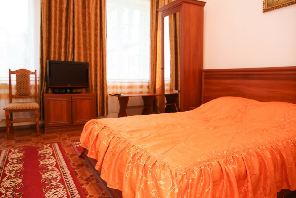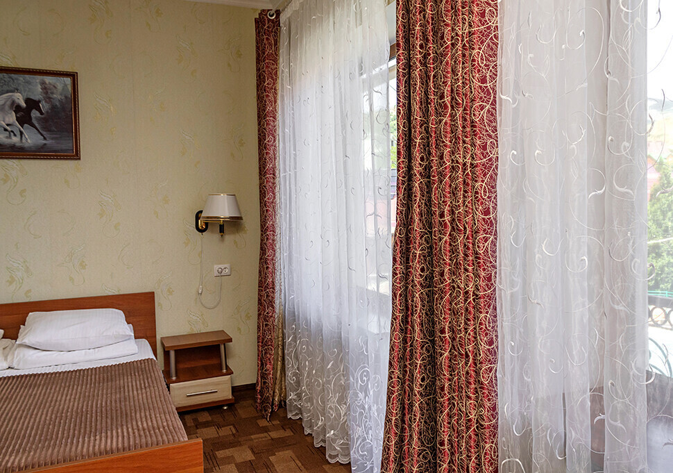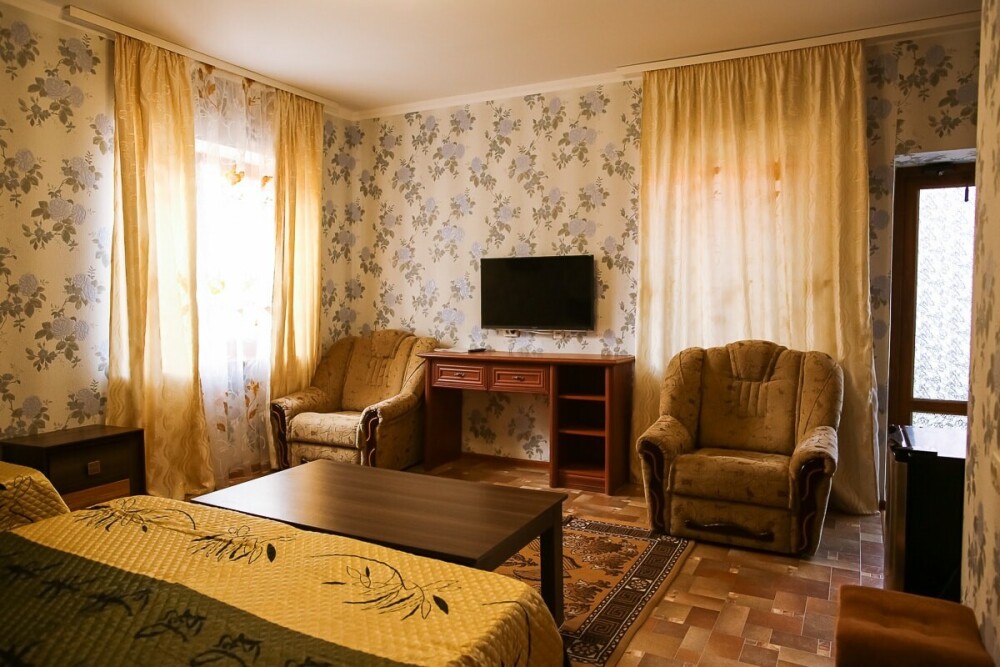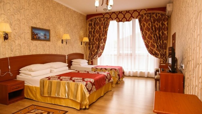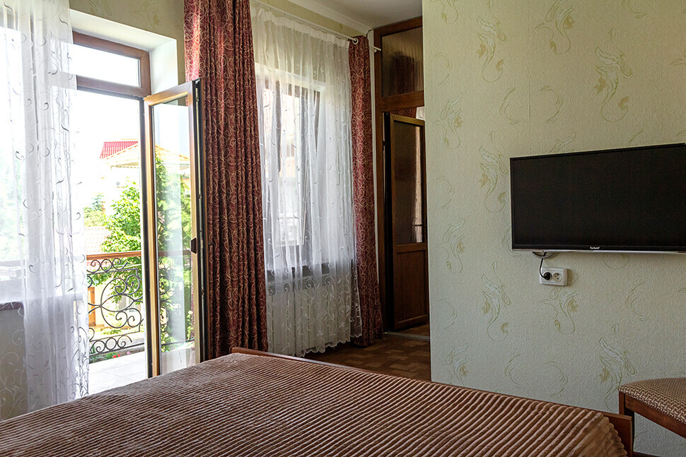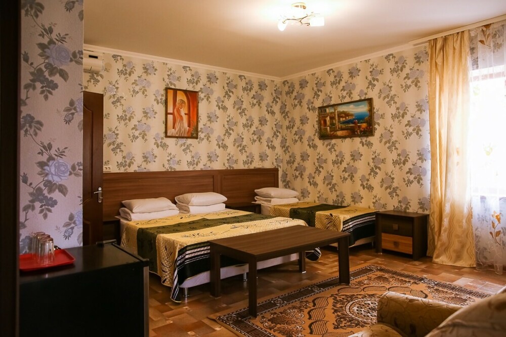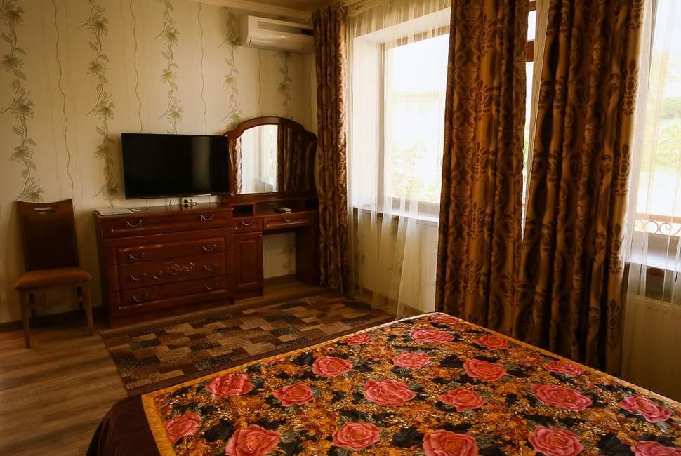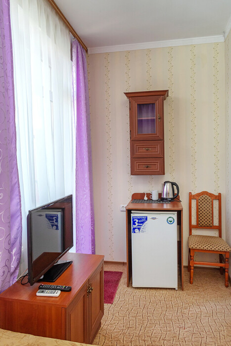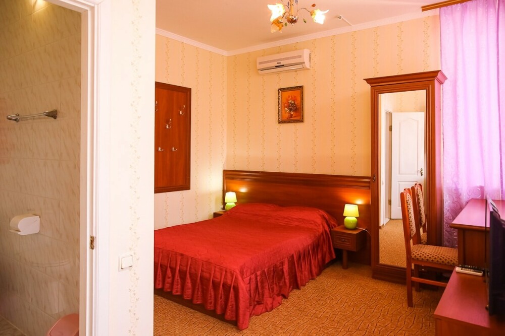 В нашем номерном фонде представлены: стандартные номера (2-3-местные), двухкомнатный номер на 4-5 человек, номера Полулюкс (2-3-местные) и Люкс (2-3-местные). В каждом номере есть все необходимое для комфортного проживания: современная мебель, телевизор со спутниковым ТВ, кондиционер, холодильник, отдельный санузел.