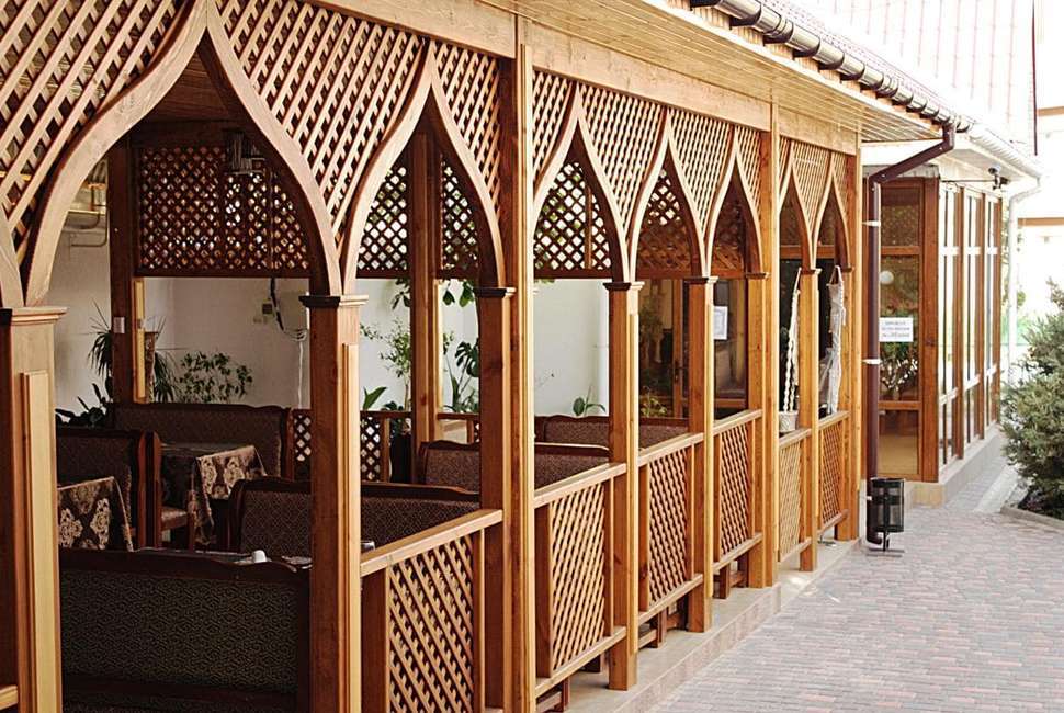 На территории базы отдыха к услугам наших гостей большая благоустроенная столовая и мини-маркет. Мы предлагаем 3-х разовое сбалансированное комплексное питание, или же Вы сможете заказать любое блюдо из ассортимента меню. Наш шеф-повар предлагает Вам блюда европейской и восточной кухни, а также изысканные шедевры из морепродуктов. Наша национальная кухня славится богатым выбором шашлыков, пловом, узбекскими лепешками.