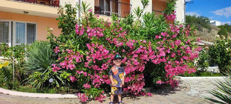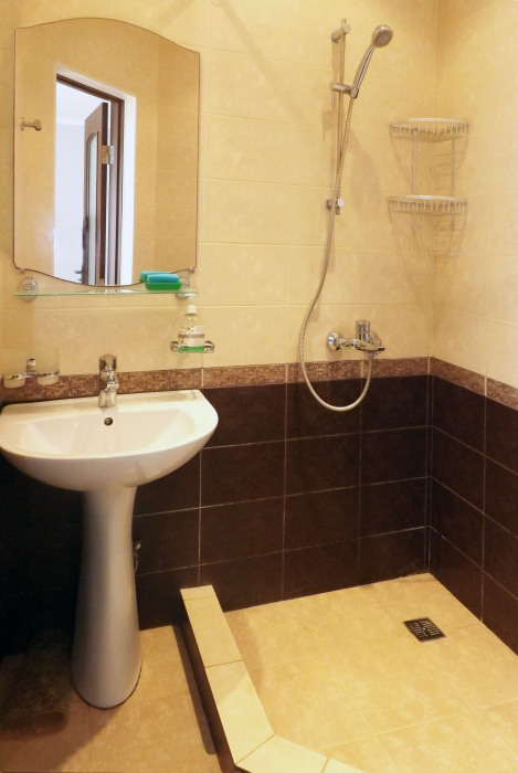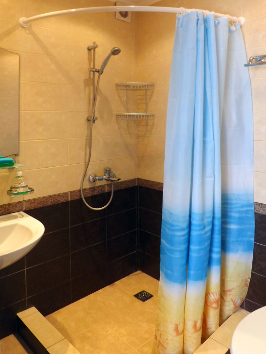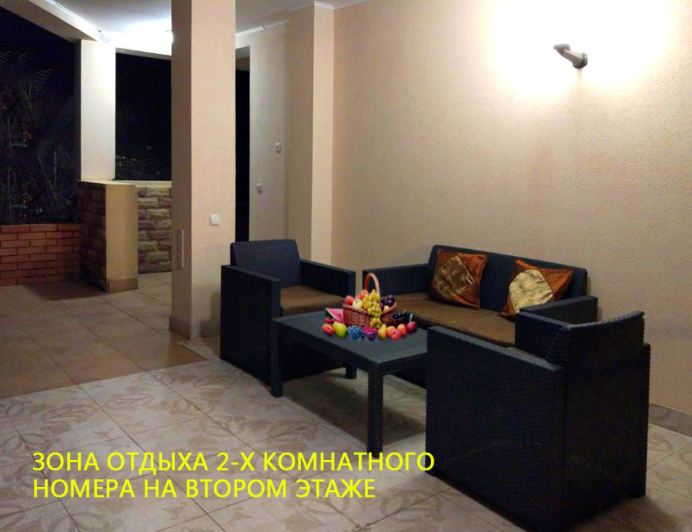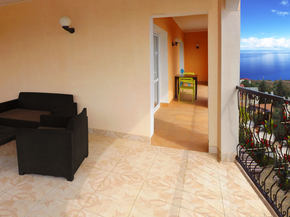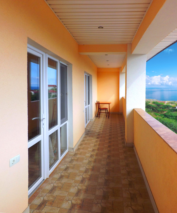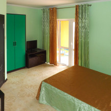 2-х комнатный номер (в каждой комнате санузел), большой балкон+терраса, расположен на 2-м этаже Виллы Васалия. Вид на море. Удобства: две комнаты(в первой комнате большая двухспальная кровать, во второй две односпальные кровати), в каждой комнате собственный санузел (фен в санузле), комплект полотенец, мини-холодильник, кондиционер(в комнате с двухспальной кроватью), цифровое TV в каждой комнате, чайник, большая зона отдыха на балконе(оборудована мебелью из ротанга). Выход на балкон с каждой комнаты. Есть возможность воспользоваться микроволновой печью, плитой, стиральной машиной и утюгом.