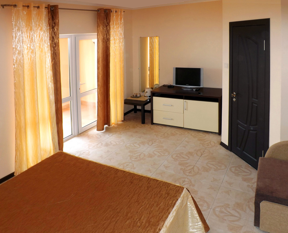 Данная категория номеров, с индивидуальным балконом, расположена на первом и втором этаже Виллы Васалия. Вид на море. Номера оборудованы: санузлом(фен в санузле), полотенцами, мини-холодильником, кондиционером, цифровым TV, чайником, зоной отдыха на балконе(стол+стулья). Есть возможность воспользоваться микроволновой печью, плитой, стиральной машиной и утюгом. Некоторые номера оборудованы 1,5 спальными диван-кроватями(дополнительное спальное место для одного взрослого, 1-2 детей).