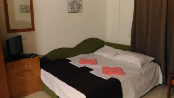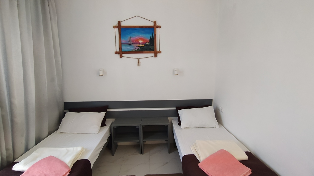 В номере односпальные (двуспальные) кровати, шкаф, тумбочки, стол, стулья. Кондиционер в одной комнате.