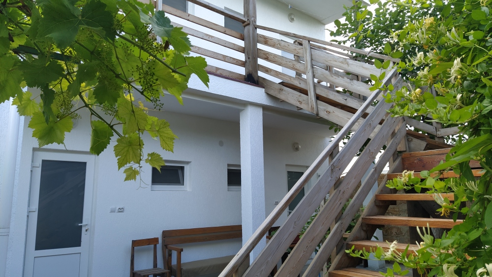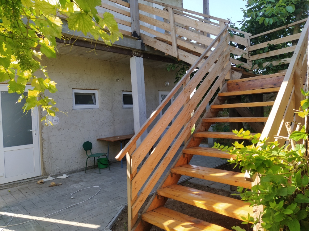 Вход на 2 этаж по наружной лестнице. К морю 15-20 минут прогулки. Стоянка для автомобиля во дворе.