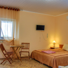Номера оформлены в классическом стиле и оснащены кондиционером, телевизором и холодильником.