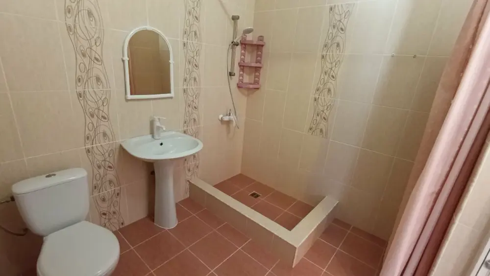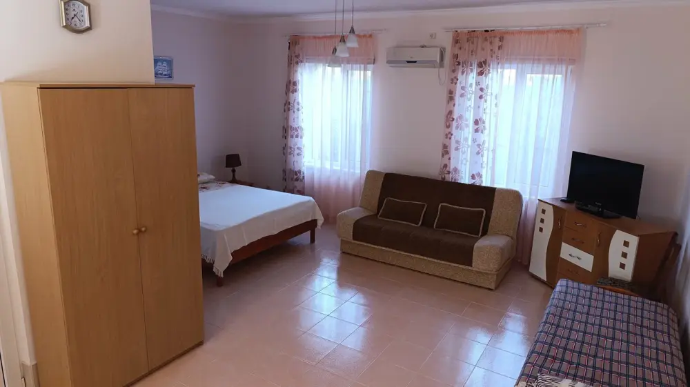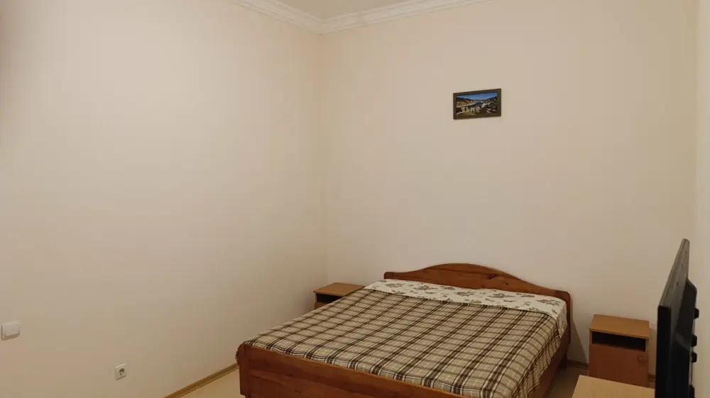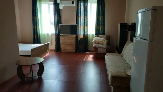 В номере: двуспальная и односпальная кровати, двуспальный диван, холодильник, кондиционер, телевизор, столик, посуда. Удобства в номере с душем и индивидуальным бойлером.