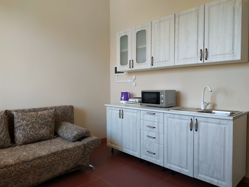 В апартаментах: мини-кухня с плитой, холодильник, собственный бойлер, лоджия с видом на море.