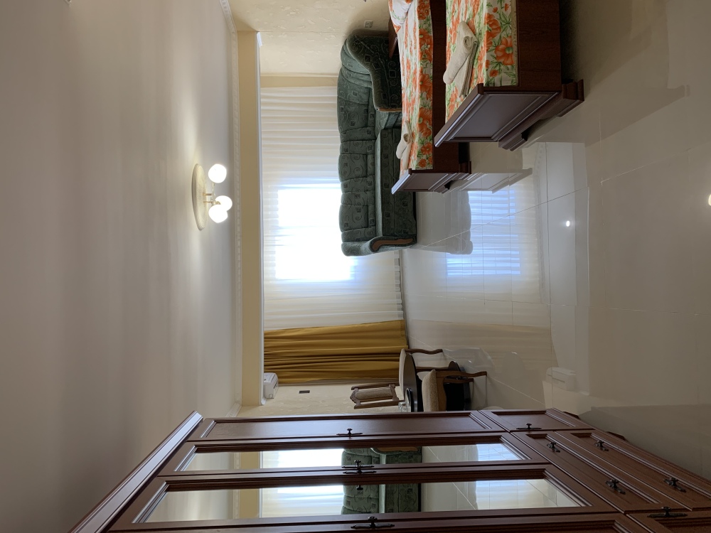 - Постельное бельё, комплект полотенец (лицевое и банное), туалетные принадлежности (жидкое мыло, бумага)
