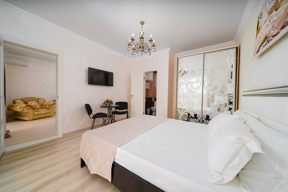Основное место - двуспальная кровать (160/180*200 см)/или TWIN, дополнительное место - кресло-кровать (80*190 см).