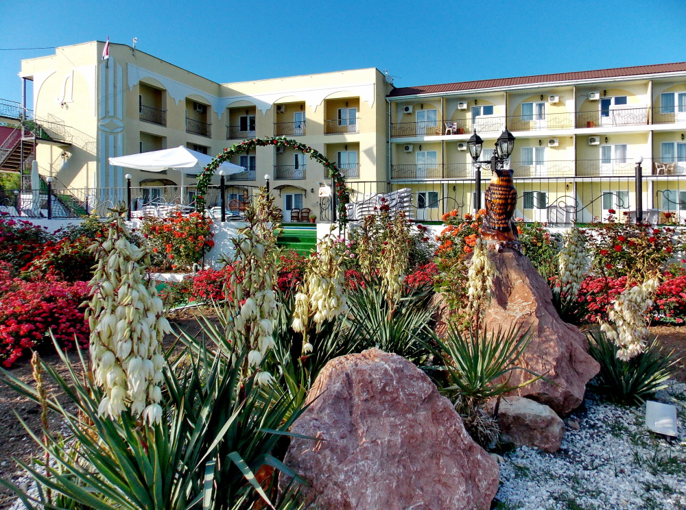 Гостевой дом располагается на Западном побережье Крыма, на территории базы отдыха «Прибой». Мы искренне считаем, что наша локация идеально подходит для комфортного отдыха с маленькими детьми: широкая береговая линия, новая оборудованная набережная, дорожки прямо к морю для всех гостей!