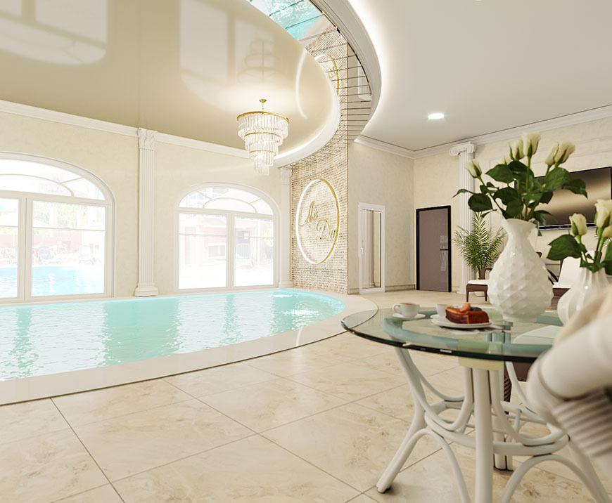 Собственный SPA-комплекс с крытым бассейном. В SPA-меню: финская сауна, хаммам, соляная комната, массажи и другие процедуры по уходу за телом;