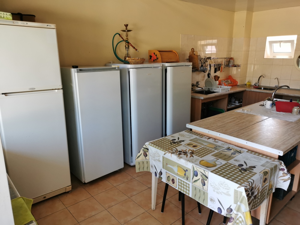 В гостевом доме имеется общая оборудованная кухня с холодильниками, кухонными принадлежностями и посудой.
