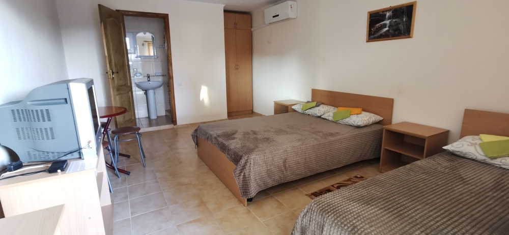 Рады пригласить Вас на отдых гостей в комфортабельные номера. Имеются 2,3,4-местные номера с возможностью установки дополнительного места. В каждом номере удобная мебель, свой душ, туалет, умывальник (вода горячая и холодная круглосуточно), кондиционер/вентилятор, спутниковое TV, Wi-Fi.