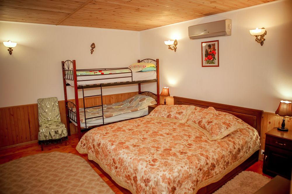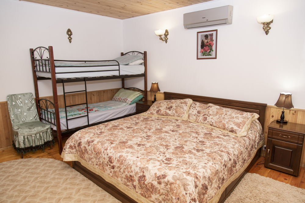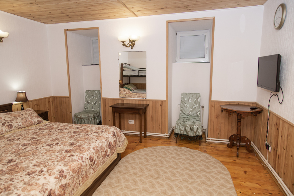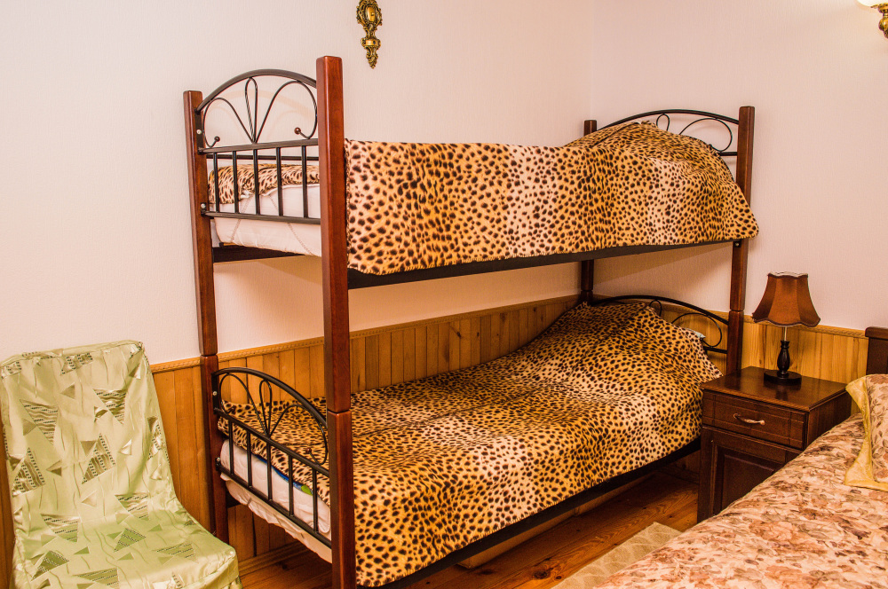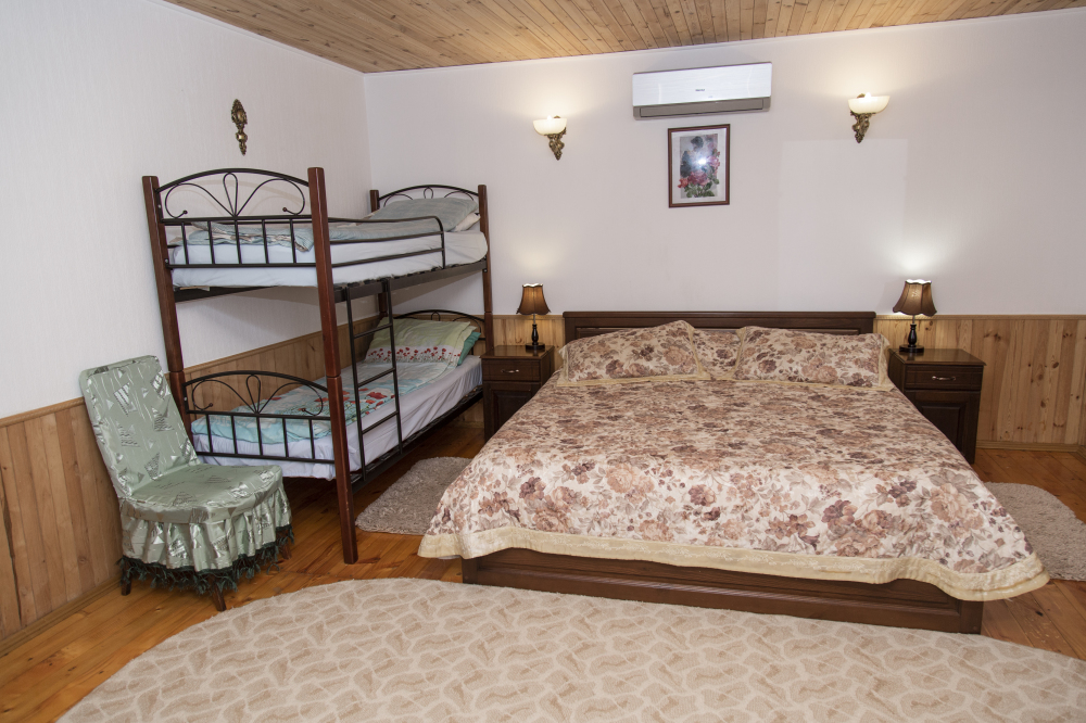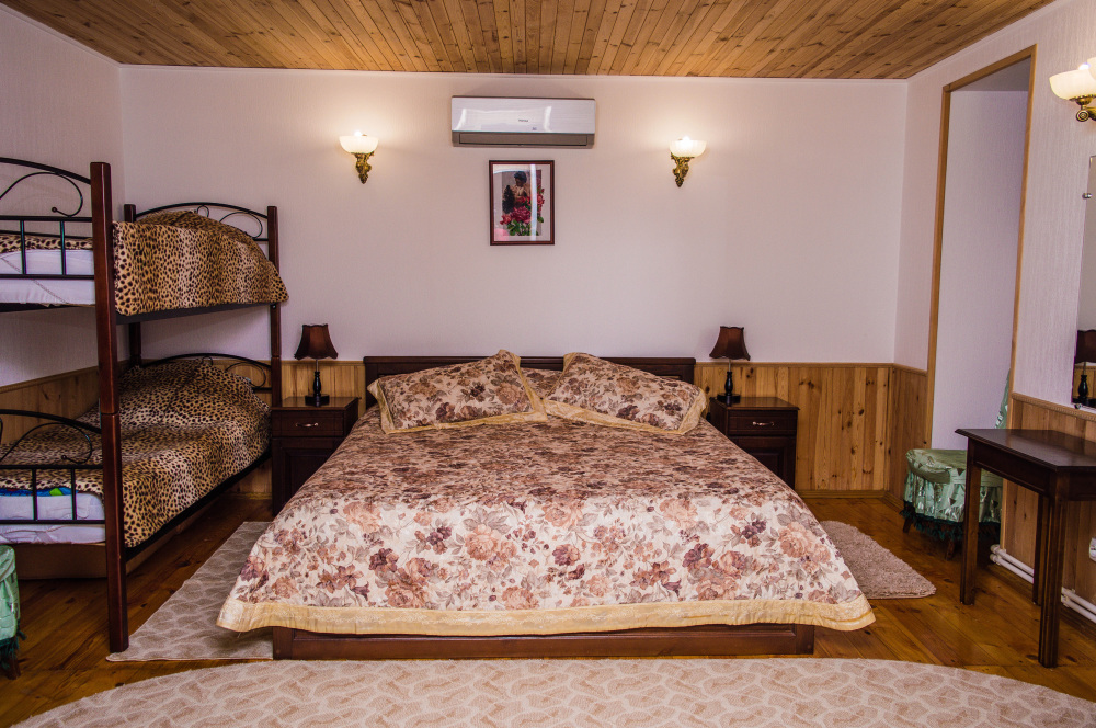 • 1 двуспальная кровать, 1 диван-кровать, 1 двухъярусная кровать, детская кроватка (по запросу)