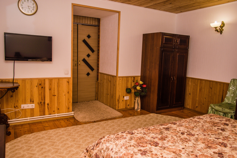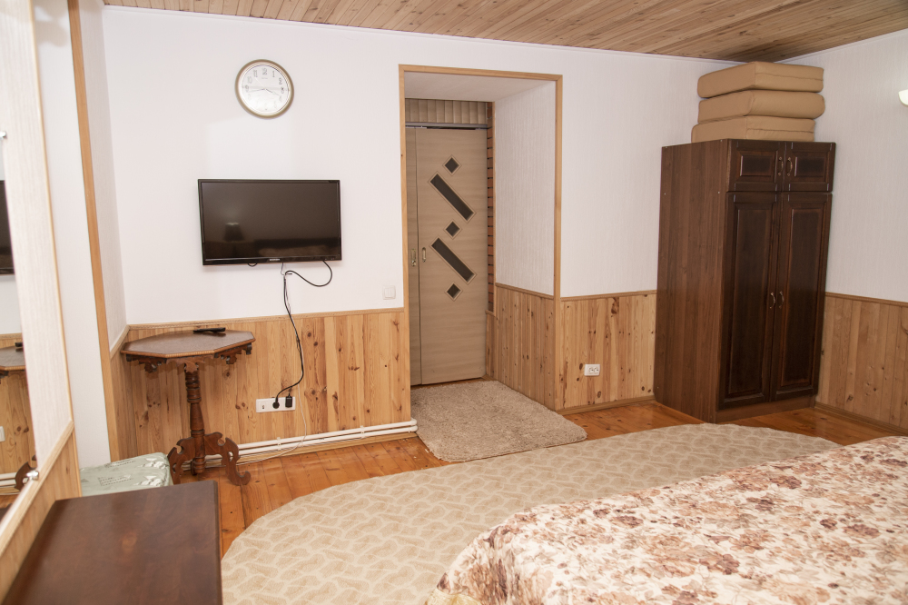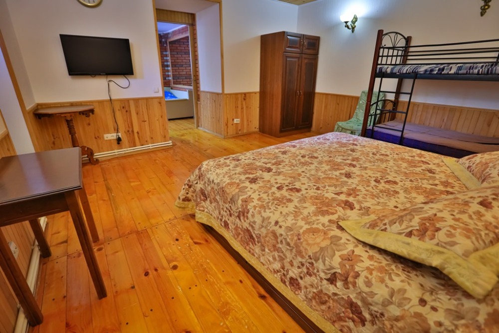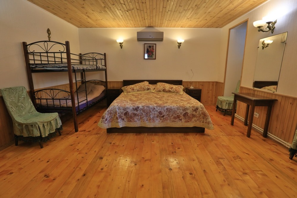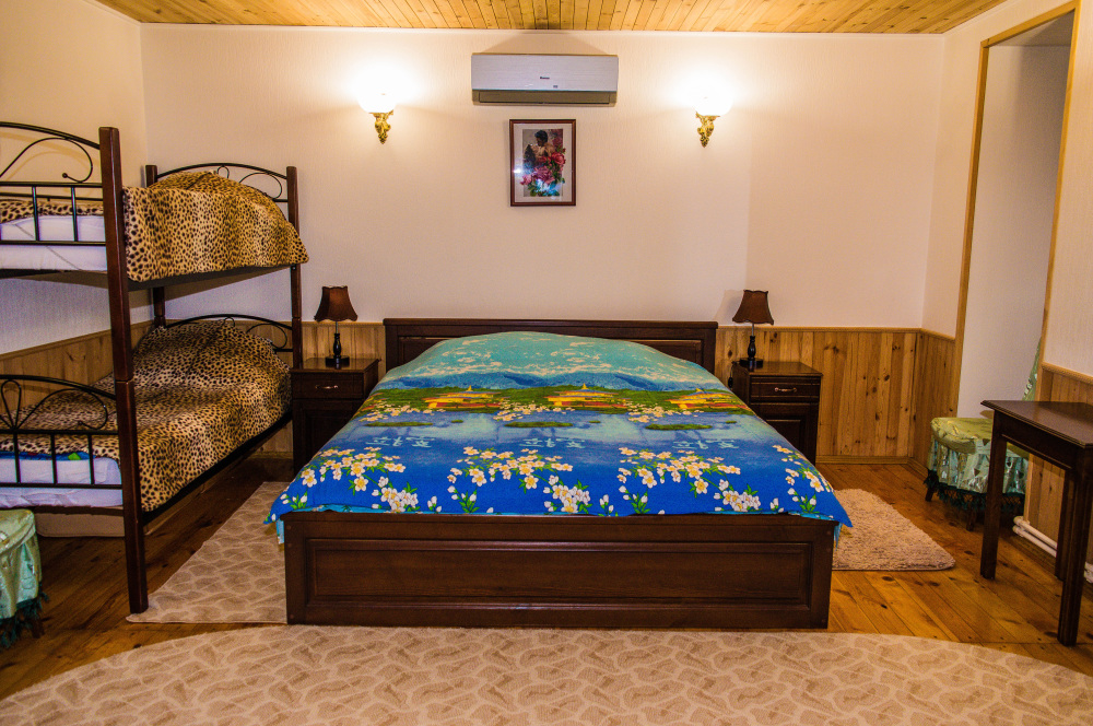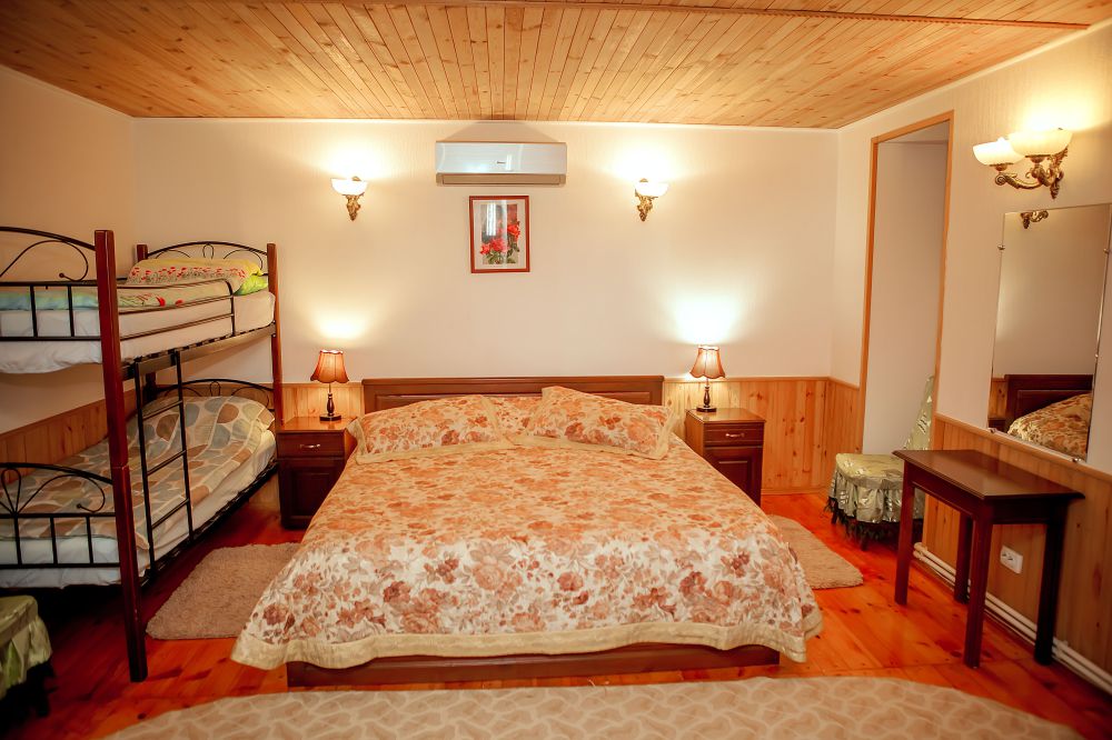 • 1 двуспальная кровать, 1 диван-кровать, 1 двухъярусная кровать, детская кроватка (по запросу)