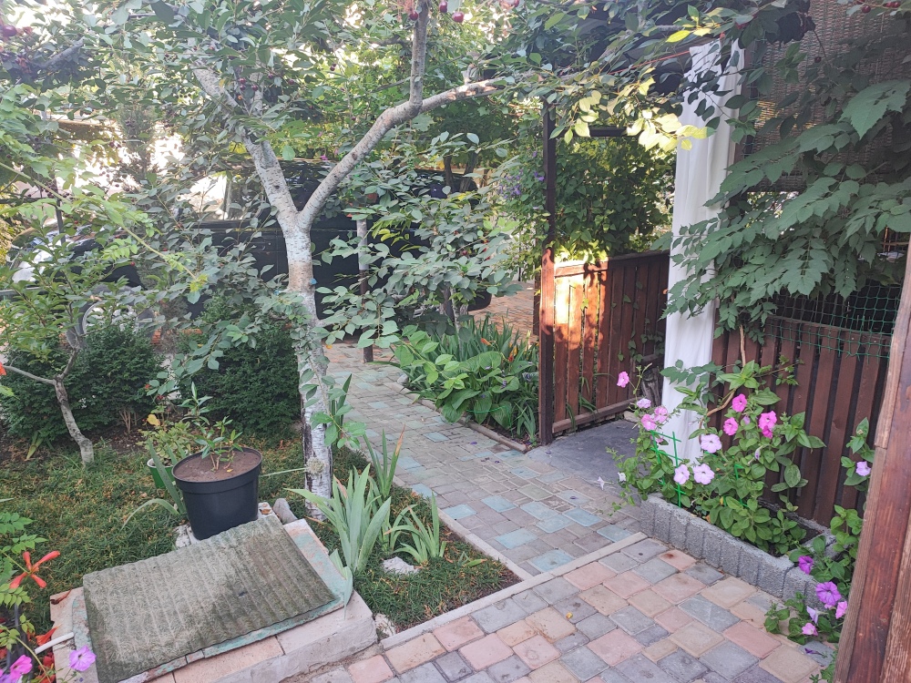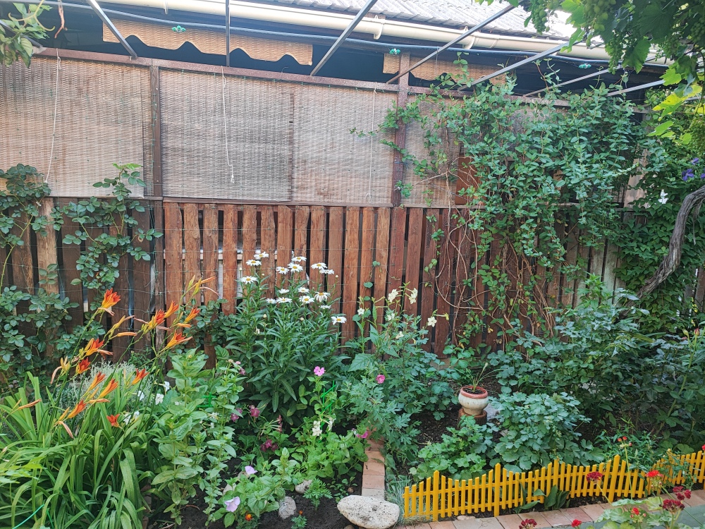 Этот вариант прекрасно подойдет для проживания семьи до 5-ти человек, есть всё для комфортной жизни. Возле веранды растут различные растения, которые закроют от солнечных лучей в солнечную, жаркую погоду. Помимо всего этого, на территории участка расположена мангальная зона со всеми удобствами.