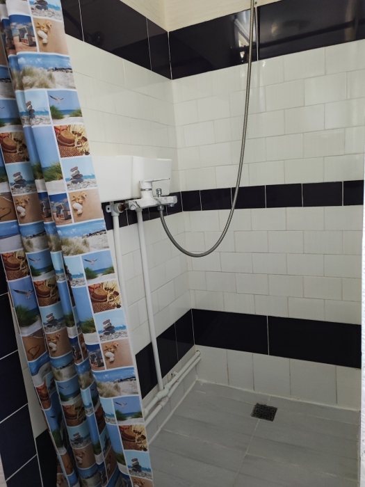 Во второй комнате в коридоре находится кухня, со всем необходимым для готовки ,и в отдельном помещении, совмещенный душ с санузлом. В комнате расположена двуспальная кровать и односпальная кровать, кондиционер и телевизор.