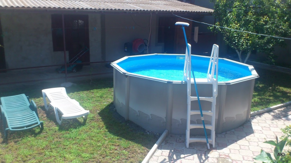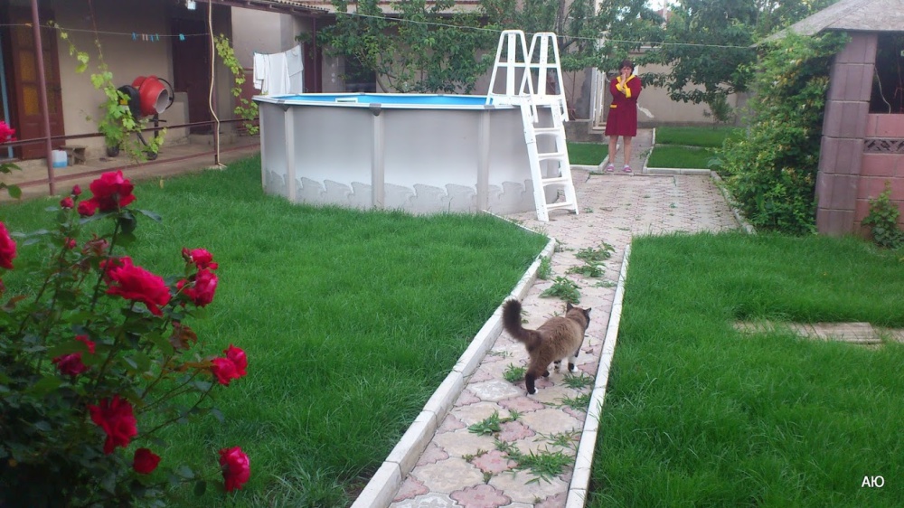 Территория вся чистая и ухоженная. Много цветов, плодовые деревья, виноград. Большая чайхана и бар ждут своих посетителей) Есть каркасный сборный бассейн, шезлонги, детская площадка. Большая мангальная, где вы сможете сами приготовить шашлык.