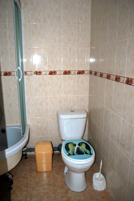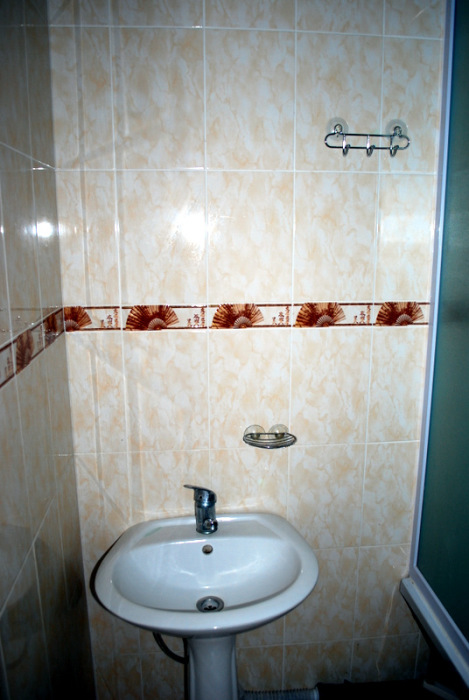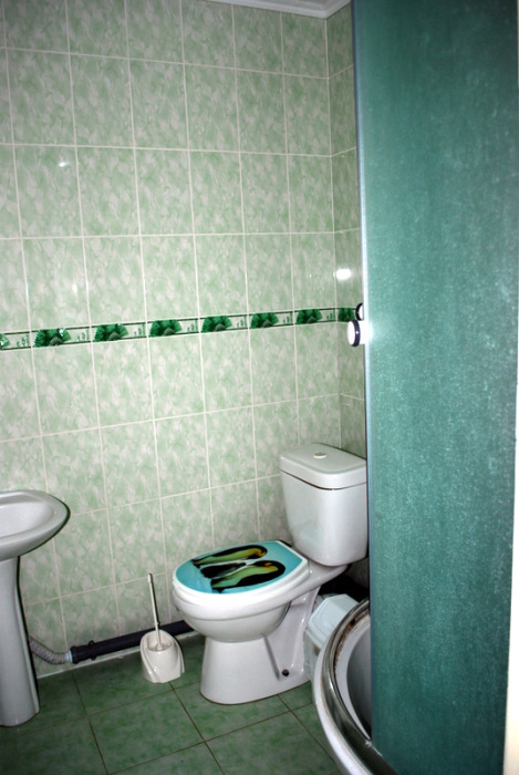 Отдельно от центрального дома расположен двухэтажное здание, на первом этаже три душевые и четыре туалета. На втором этаже три комнаты эконом класса. В коридоре стоит холодильник и расположен санузел.