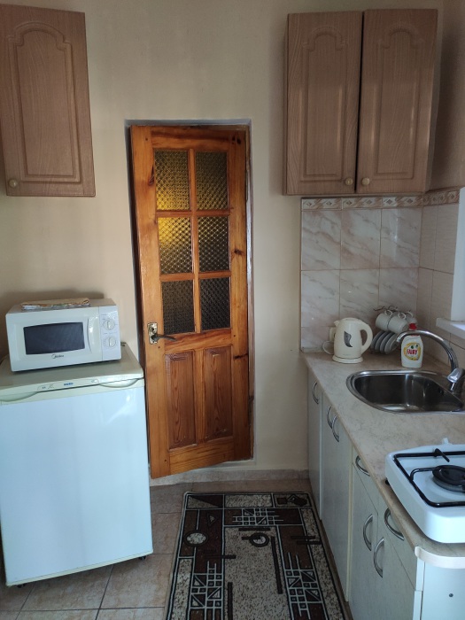 Номер с кондиционером рассчитан на 3 чел. Также мы предлагаем-парковку для машины, постельное белье, полотенце, посуду,душ, гор./хол. вода круглосуточно; холодильник, вид на море, кухню, спутниковое ТВ, телевизор, интернет WI-FI.Рядом находятся Ялта (центр) на маршрутке 25 мин., Симеиз- Аквапарк 20 мин.