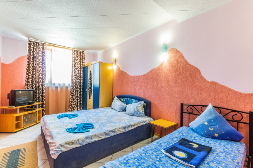 Целебный воздух, пейзажи величественных гор, чистейшее озеро, прозрачное море сделают Ваш отдых на мысе Меганом незабываемым. Пляж длинной 2 км на любой вкус (песок, галька). Расстояние от гостиницы до моря 800 метров (минут 15 ходьбы).