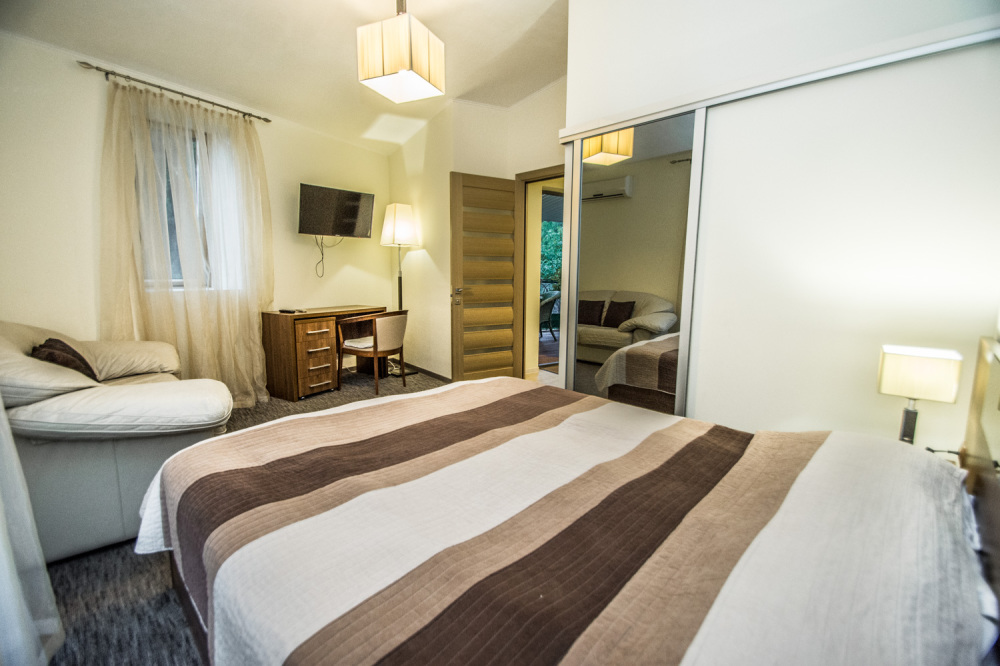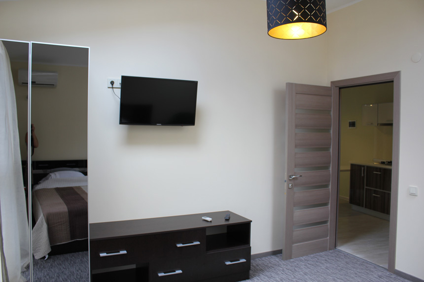 Двухкомнатный номер укомплектован всем необходимым для комфортного проживания