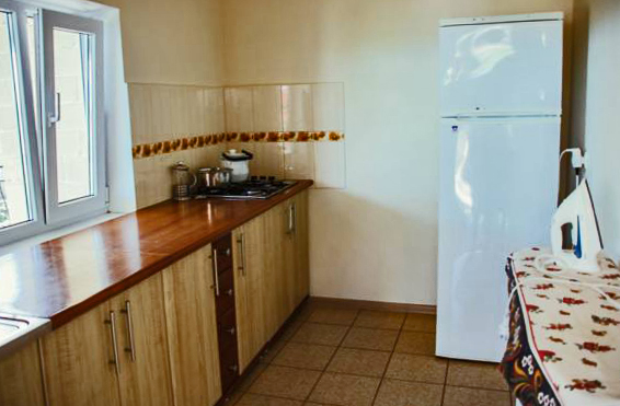 Номера удобно расположены — есть варианты с отдельным входом, на первом и втором этажах углового дома, а также с общей просторной террасой. В цокольном этаже одной половины дома находится большая кухня с всем необходимым для самостоятельного приготовления, а рядом — столы и телевизор для комфортного отдыха и приёма пищи.