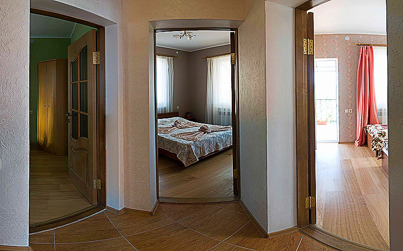 В двух спальнях по двухспальной кровати, в одной спальне 2 односпальные кровати (есть возможность сдвинуть вместе).