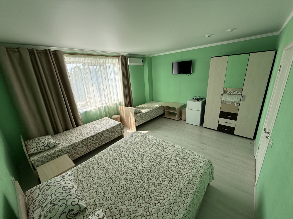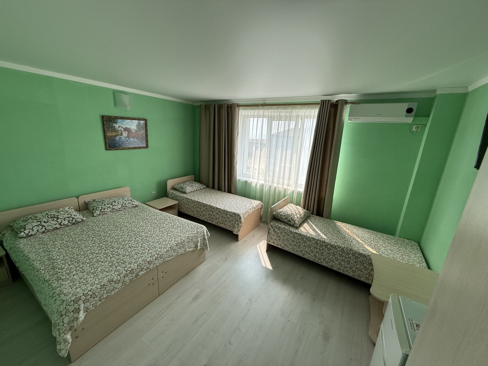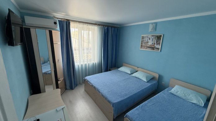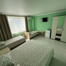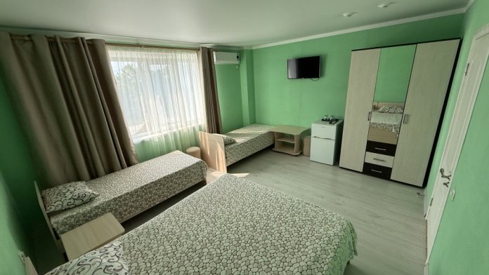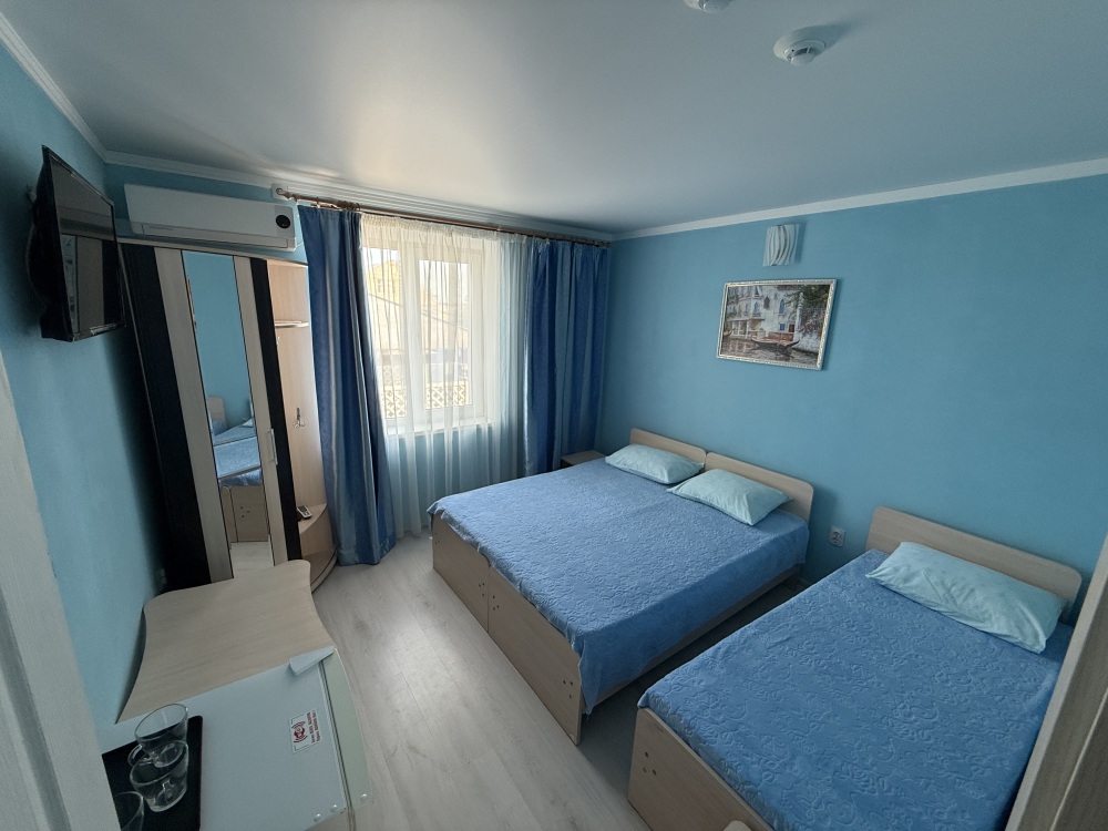 В каждом номере: санузел (душ, умывальник, туалет), кондиционер, телевидение Т2, холодильник, сейф, горячая и холодная вода – постоянно.