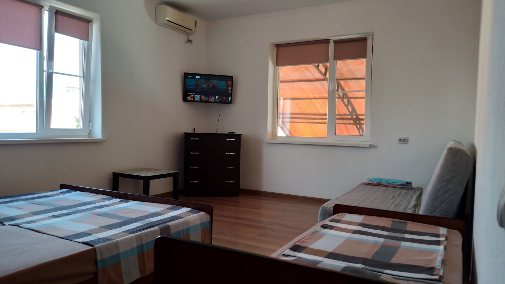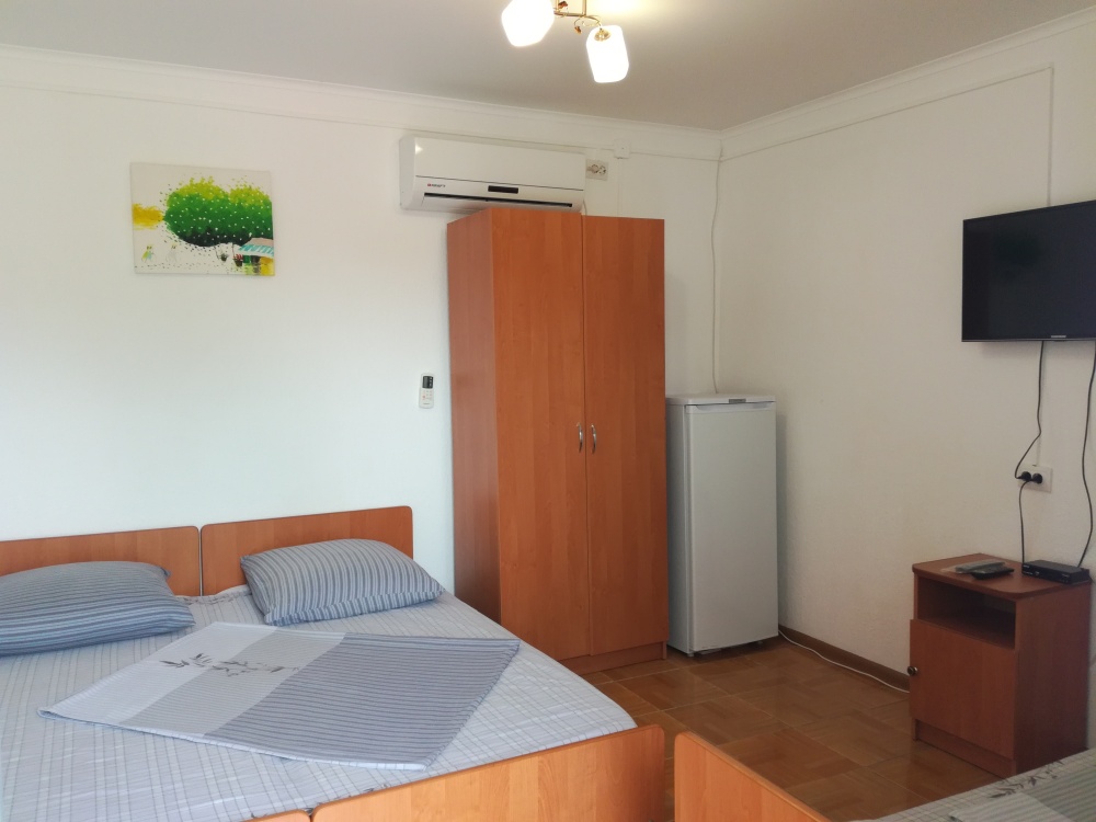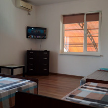 В номерах: односпальные и двуспальные кровати, двухстворчатый шкаф, тумбочка, холодильник, телевизор с плоским экраном Smart TV, сплит-система, комод, столик. На окнах москитные сетки, бесплатный Wi-Fi. При необходимости, бесплатно предоставляется детская кроватка и стульчик для кормления малышей. Смена постельного белья, полотенец и уборка номера, производится по требованию. В каждом номере санузел.