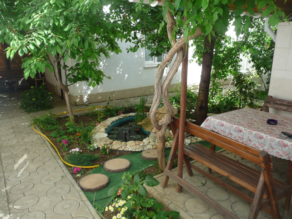 Территория дачи оформлена ландшафтным дизайнером и утопает в зелени и цветах. Свежий воздух и ощущение прохлады даже в самый жаркий день приносят морской бриз и функционирующий фонтан на её территории . Для отдыхающих установлен современная печь-барбекю, где можно приготовить блюда на открытом огне, шашлыки, плов, овощи и многое другое. Есть уютные беседки , где вы можете посидеть с компанией друзей и симпатичный ухоженный сад. Здесь все располагает к полноценному беззаботному отдыху. Для приготовления пищи у нас имеются кухни с необходимой утварью и посудой.