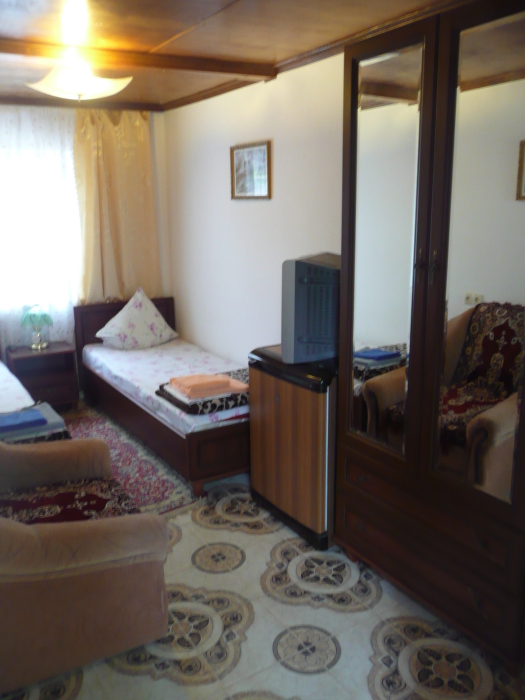 Комфортабельные комнаты, в которых могут отдыхать ,как один наш гость, так и семья из трех-четырех членов, имеют индивидуальные уголки отдыха: на балконах, верандах или в тени деревьев и винограда. Все комнаты оснащены индивидуальным санузлом с душевой кабинкой, удобным и комфортным мебельным гарнитуром, кондиционером, телевизором, почти во всех комнатах имеется свой холодильник. Успокаивающие пастельные тона, мягкие кровати, большие окна, светлые помещения, все это располагает к комфортному отдыху на побережье самого ласкового моря в мире.