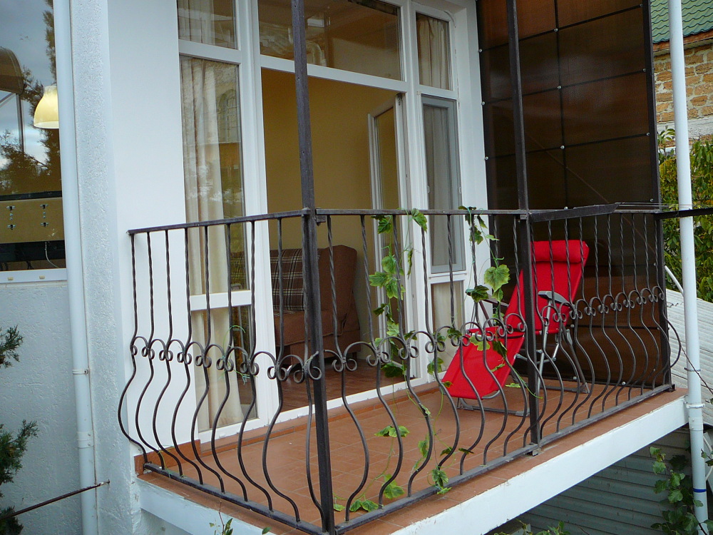 На втором этаже две спальни и зал-студия (с кухней), веранда с видом на море, санузел. В каждой комнате телевизор, кондиционер (сплит-система). Есть WiFi. Подъем на второй этаж по винтовой лестнице.