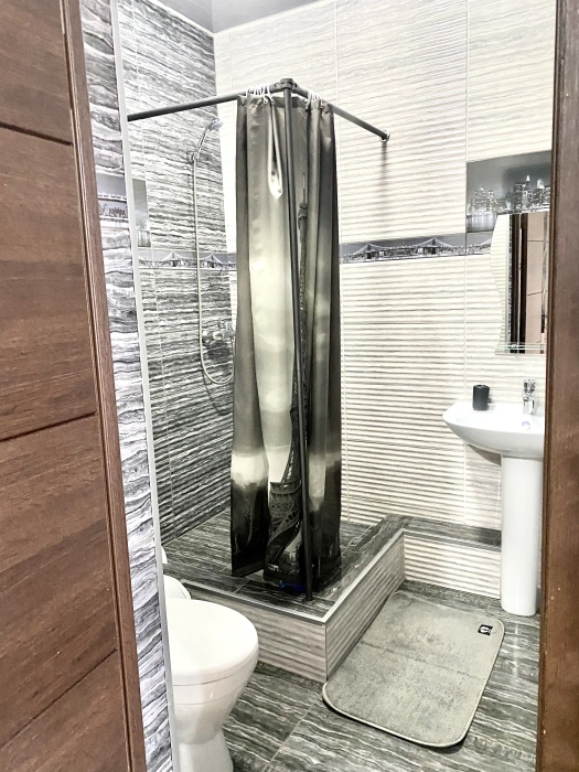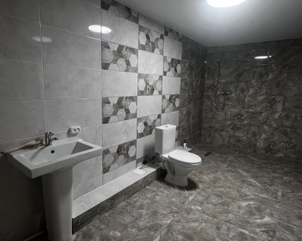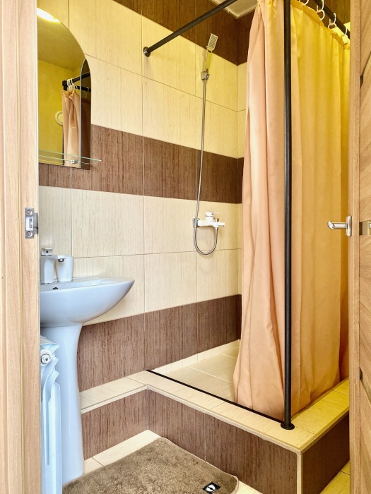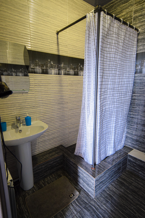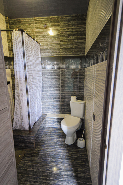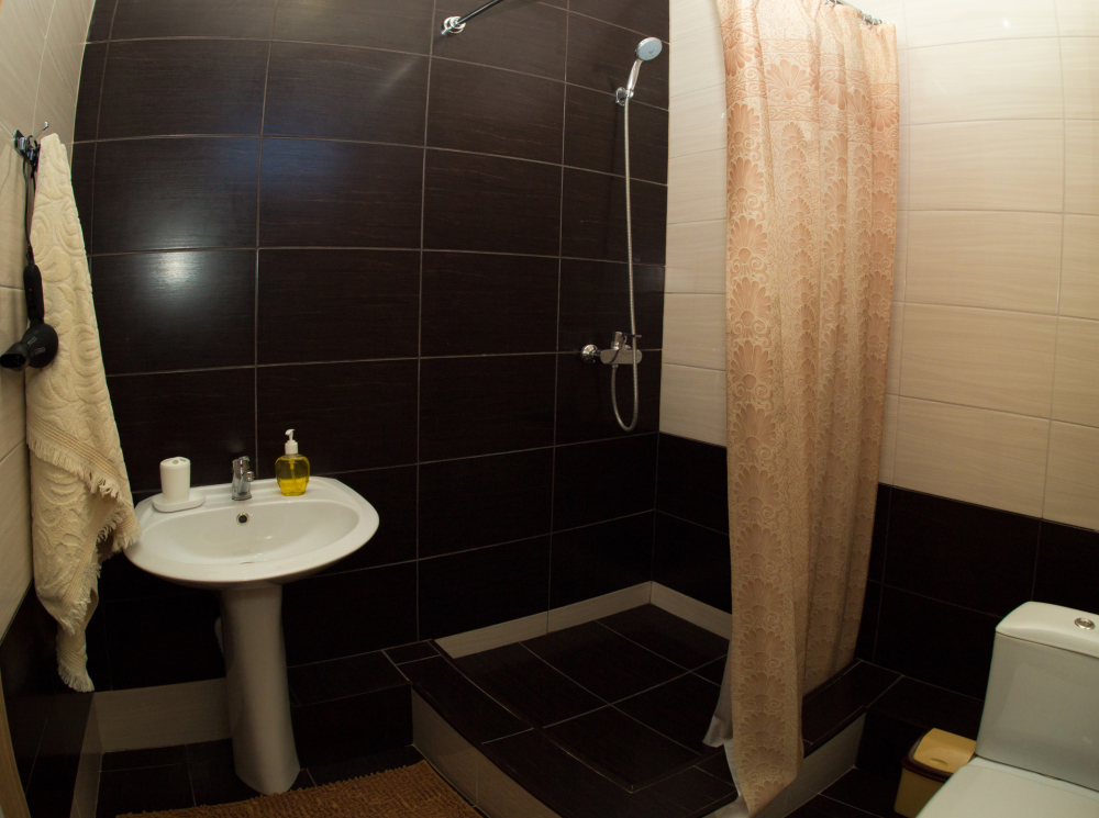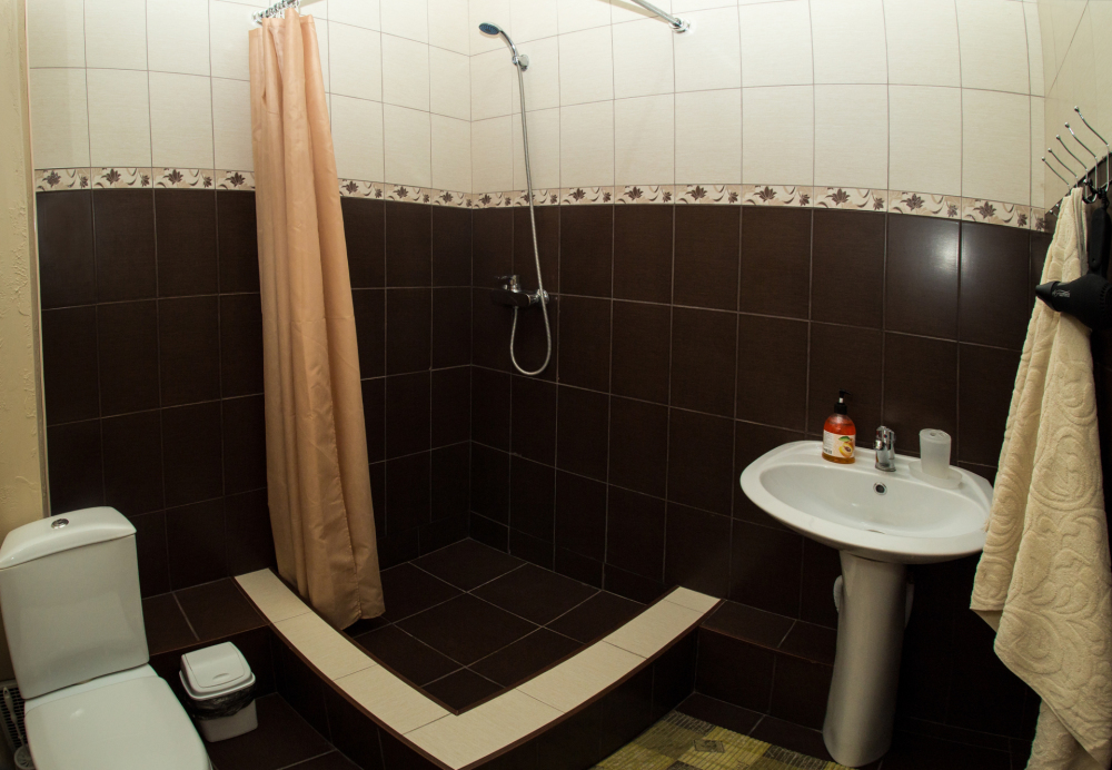В каждом номере обустроена собственная ванная комната с душем и сан.узлом (туалетные принадлежности).