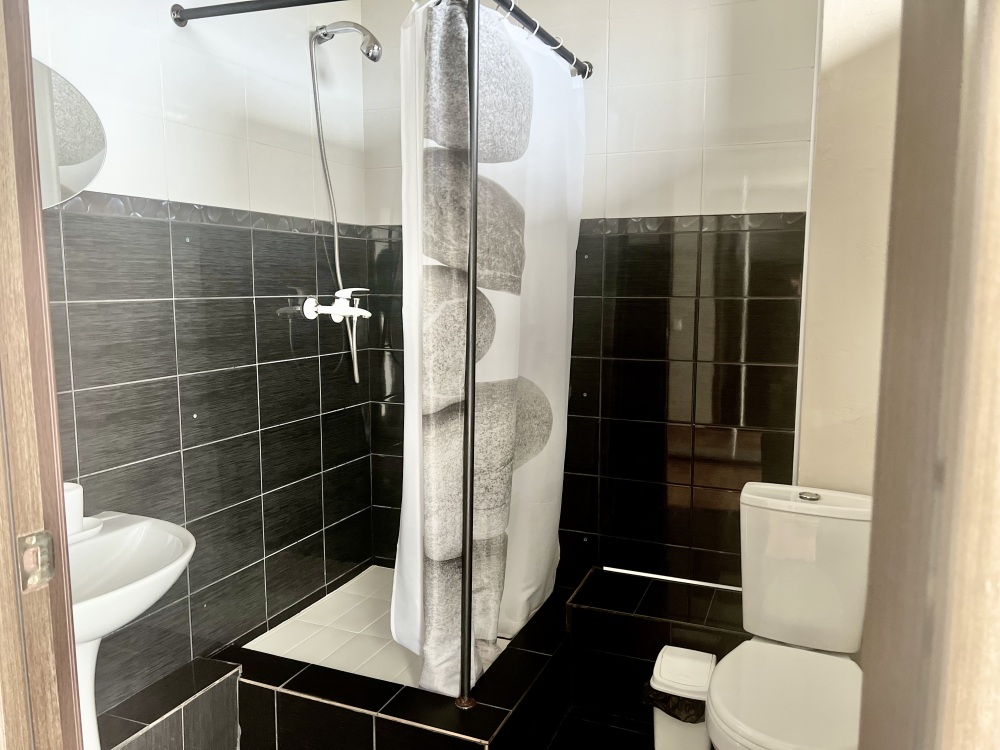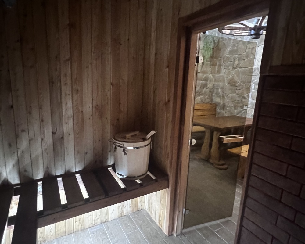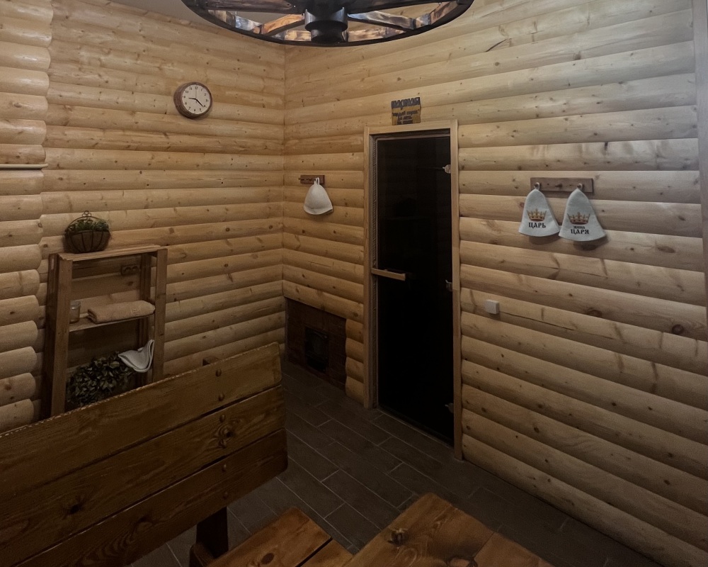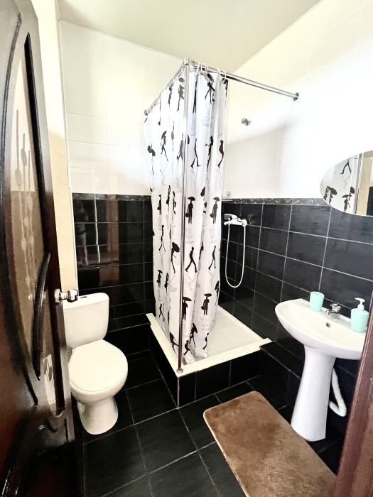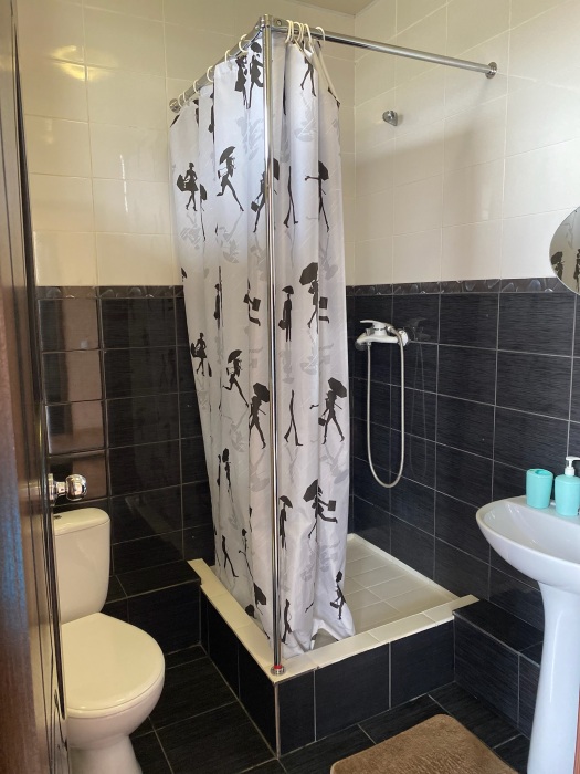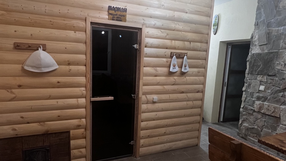 В каждом номере обустроена собственная ванная комната с душем и сан.узлом (туалетные принадлежности).