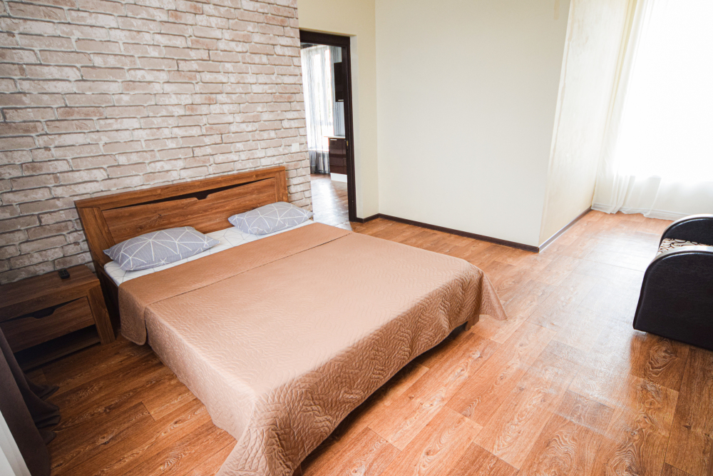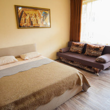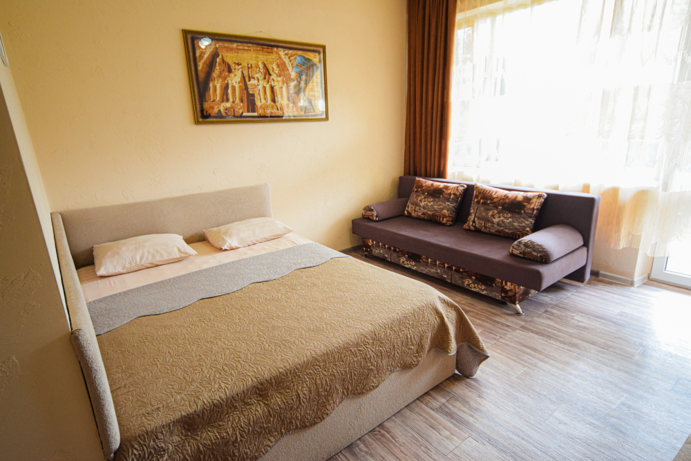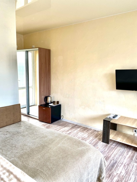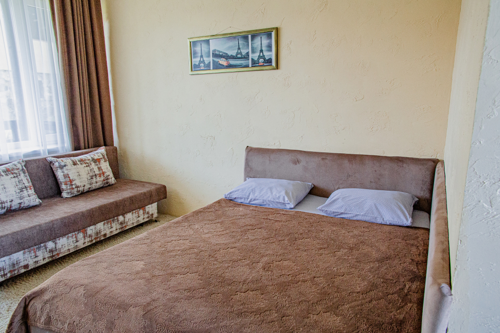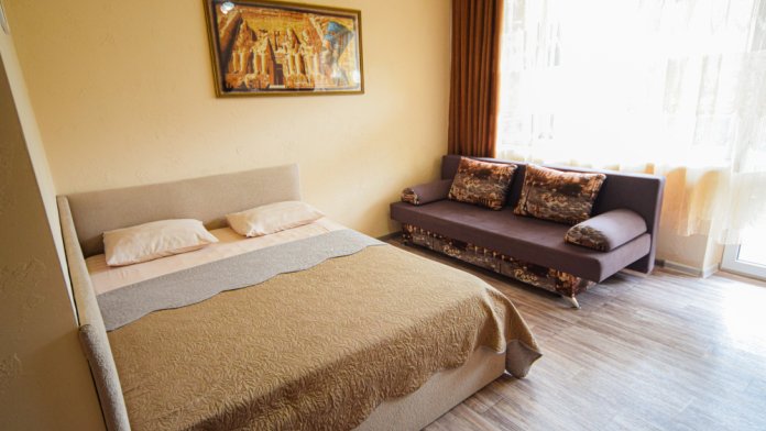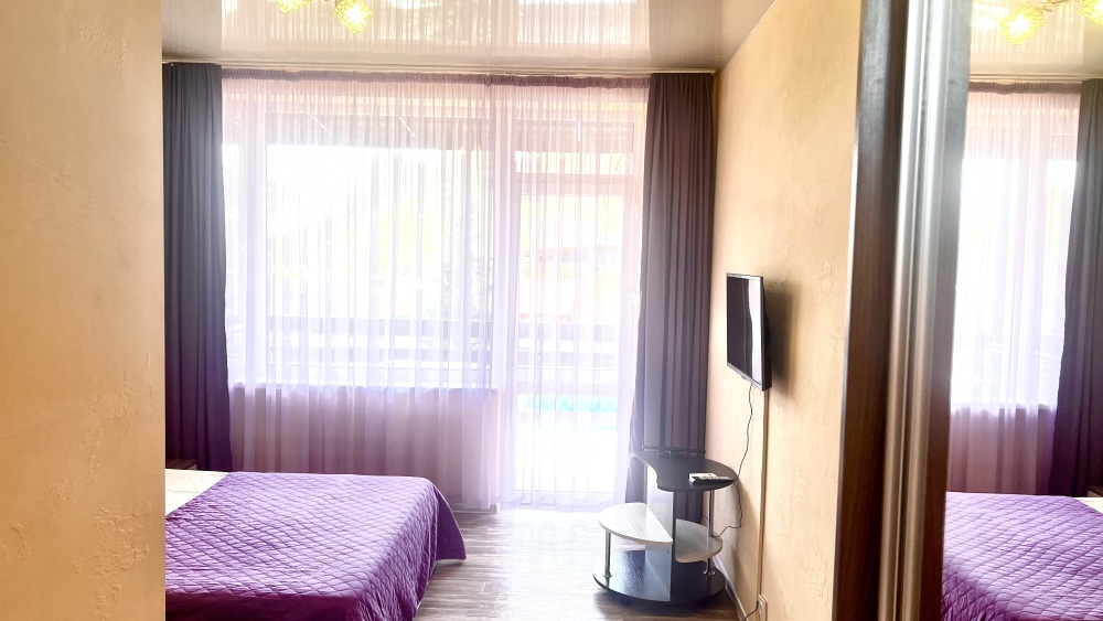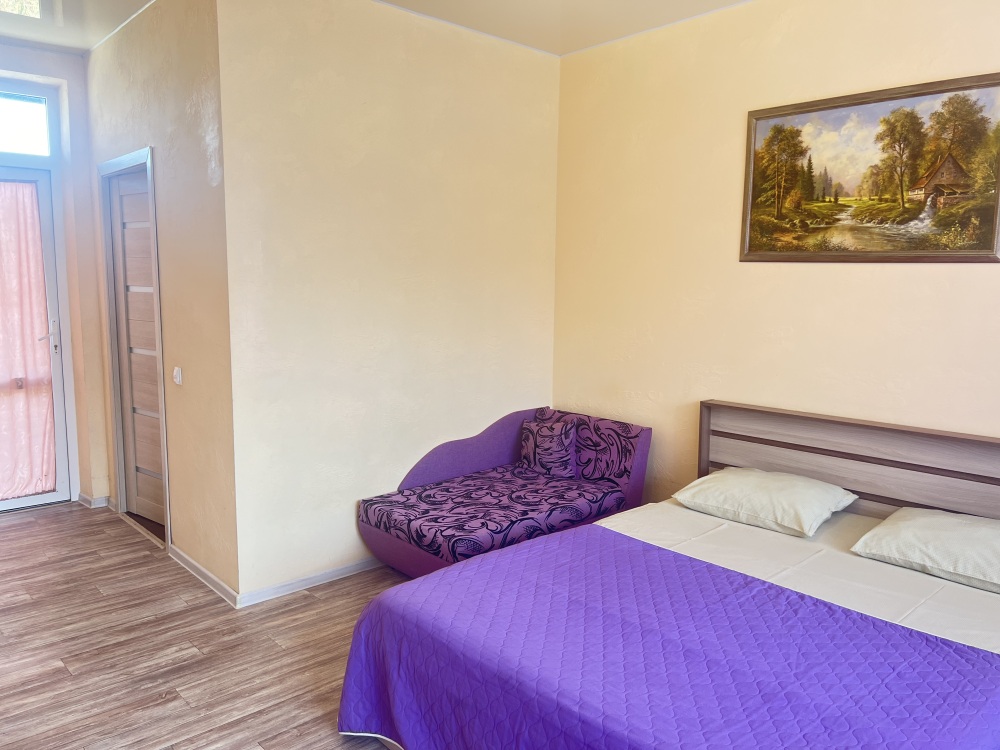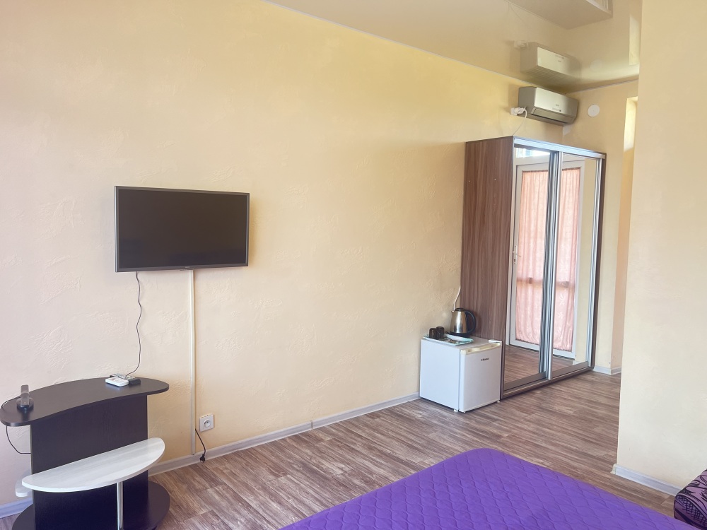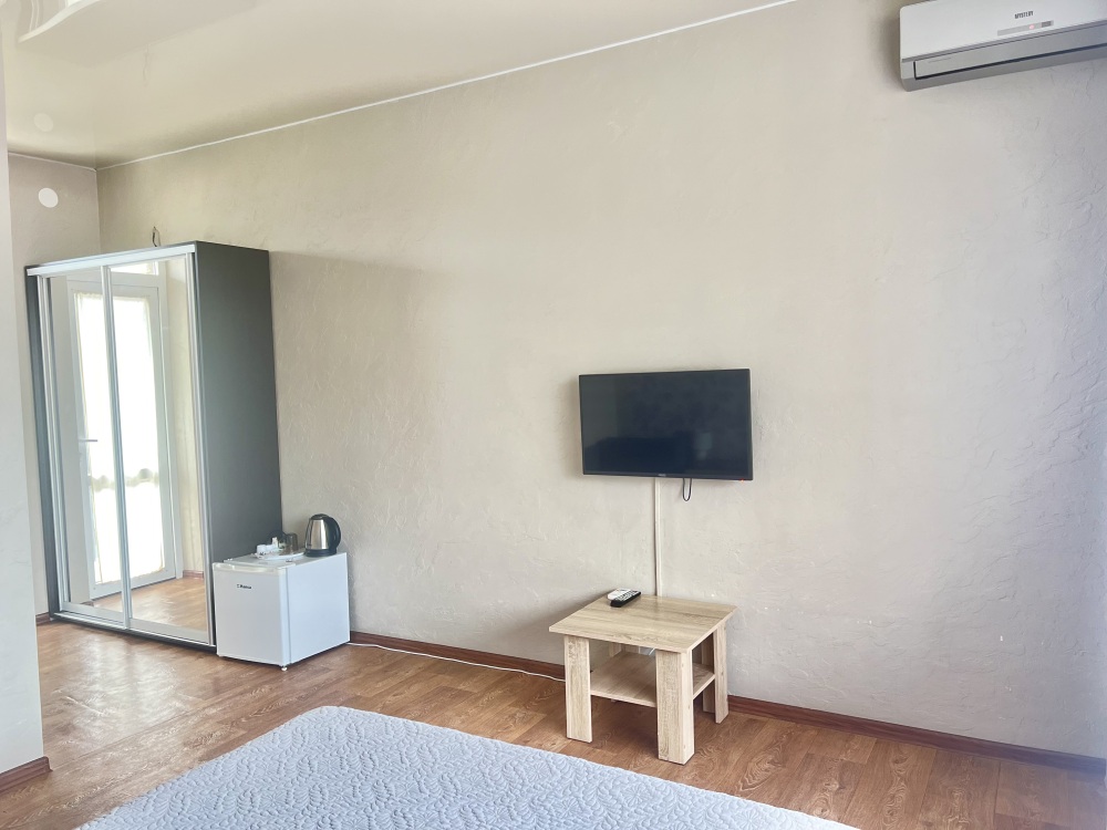 Номер находиться на первом этаже, оснащен кондиционером, телевизором с плоским экраном, холодильник, чайник, бельем и туалетными принадлежностями. В каждом номере ванная комната. Номер с отдельным входом, балкон с зоной отдыха, с видом на сад и на Генуэзскую Крепость.