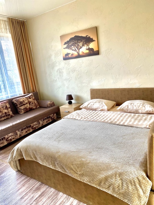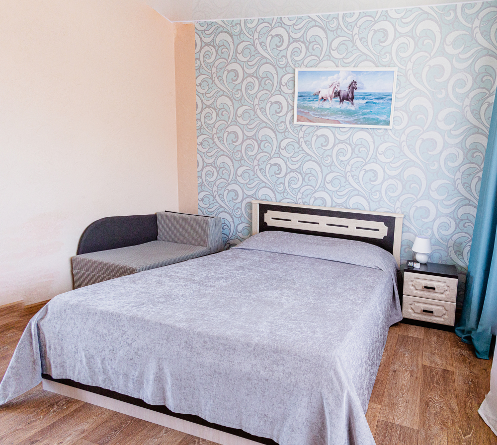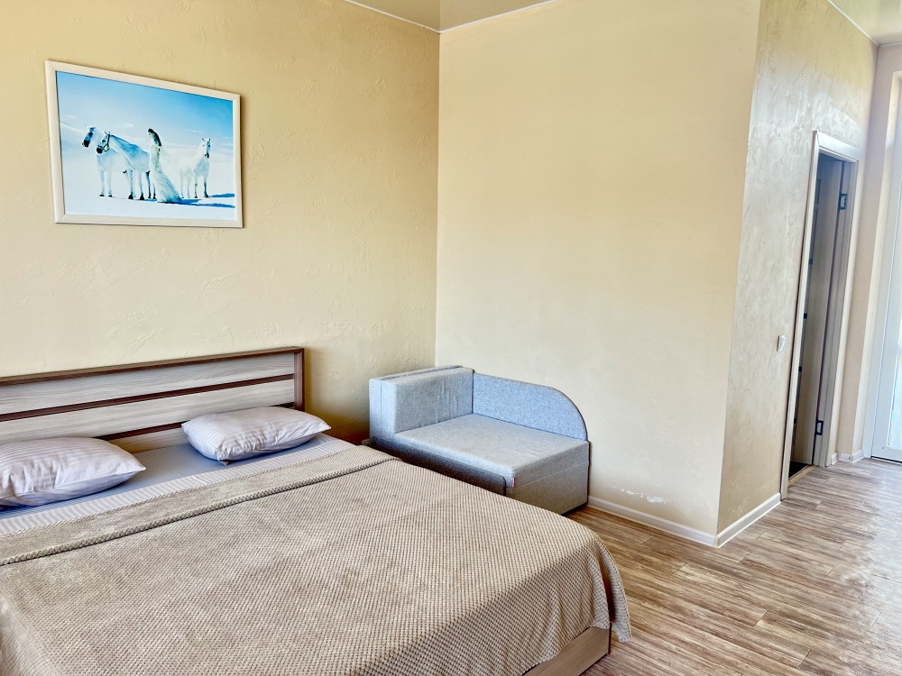 Двухкомнатный номер с видом на море и Генуэзскую крепость , номер оснащен всем необходимым для комфортного отдыха.